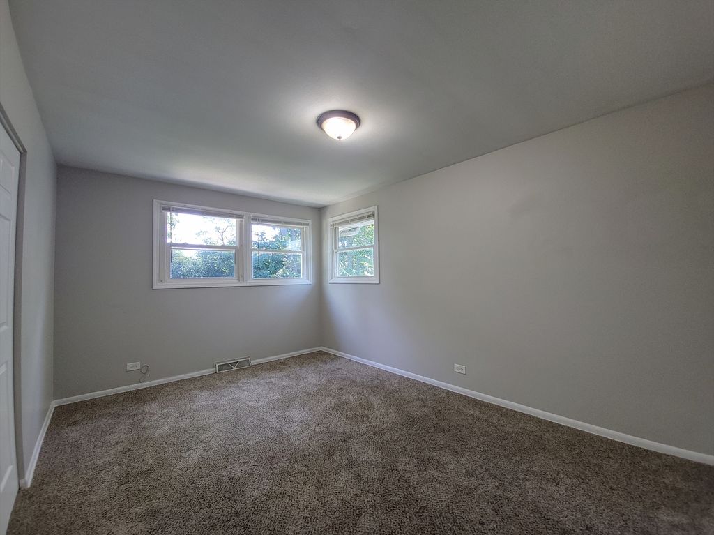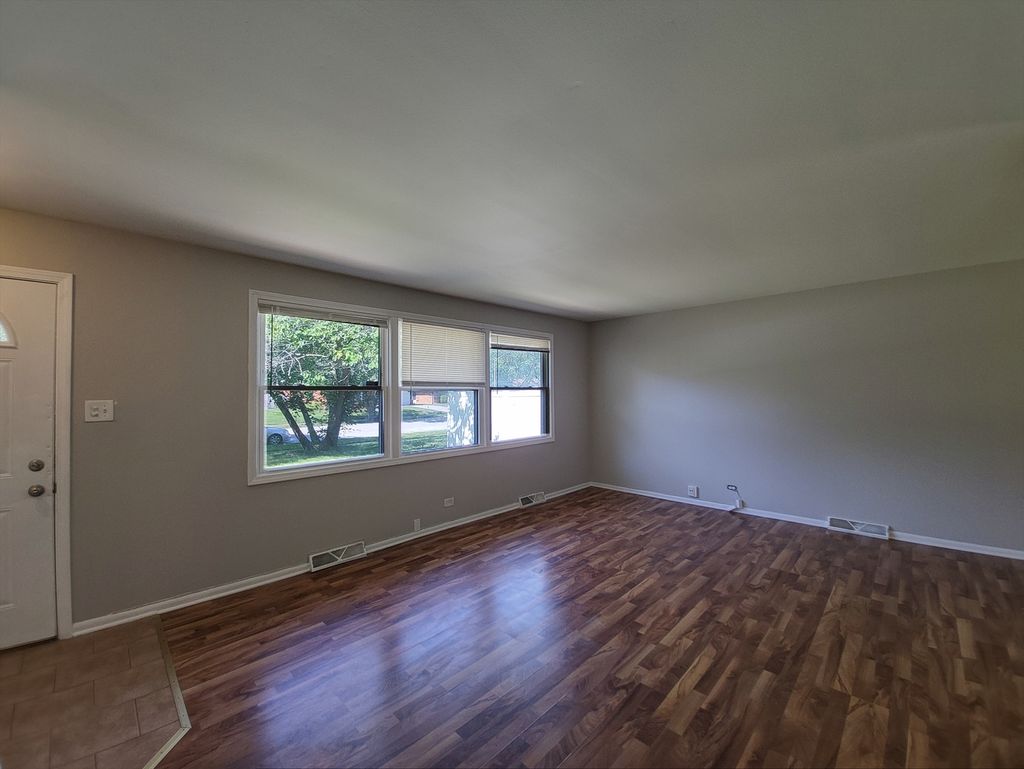 Fresh, light-filled split level (true back-split) in a quiet Hazel Crest pocket where a ranch facade surprises with two stacked levels of living inside. The main level opens to a long, sunlit living/dining space with neutral paint and durable flooring, flowing into an eat-in kitchen with extensive cabinet storage, tile backsplash, and direct access to the yard. Up a half-flight are three comfortable bedrooms with generous closets and a crisp hall bath. Down a half-flight, the oversized rec room is ideal for movie nights or play space, served by a stylish full bath with walk-in shower. A handy powder room on the main level keeps everyday living easy. Outside, enjoy a broad patio shaded by mature trees and a wide lawn great for gatherings, gardening, or a weekend playset. An attached 2-car garage and an extra-deep driveway provide ample parking. Practical perks include vinyl windows, central A/C, and a bright laundry/utility zone with extra storage. Convenient location near Hazel Crest Metra, quick access to I-57/294/80, and close to parks, and everyday shopping. Move-in ready with room to make it your own.