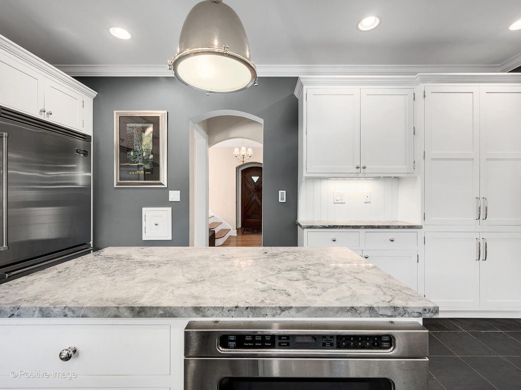 Beautiful vintage brick home with fantastic curb appeal in a very desirable area of Oak Park. This gorgeous home combines timeless character with modern updates. The first floor impresses with beautiful crown moldings in the living, dining, and kitchen areas. The spacious living room boasts hardwood floors, amazing bay window and built-in bookshelves. A large formal dining room makes entertaining effortless. The first floor also has a recently updated powder room. The remodeled eat-in kitchen features quartzite countertops, heated slate floors, Viking and Bosch appliances, custom drapes, and a custom built-in bench - ideal for casual meals or morning coffee. Upstairs are 3 large bedrooms and 2 full baths. The expansive primary suite includes two closets and a private en suite bathroom. The 2nd and 3rd bedrooms are generously sized and there is an additional full hall bathroom. Enjoy outdoor living with a screened-in porch (a mosquito-free way to relax outside) and a large concrete pad perfect for extra parking, basketball games, or entertaining. A graceful river birch tree in the front yard provides shade and additional curb appeal. This home is located in a friendly, close-knit neighborhood known for twice-yearly block parties, helpful neighbors, and easy proximity to highly sought after Mann School. This property offers both history and modern convenience in a fantastic community. Option for buyers to keep pool table, chest freezer, mini-fridge, treadmill,dining room table and chairs, and buffet. Don't miss this opportunity!