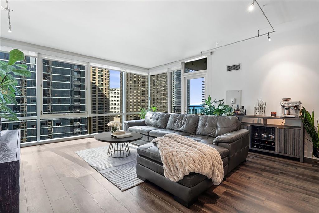 Beautifully updated 2-bed, 2-bath condo with skyline and lake views in the heart of Streeterville! This spacious high-floor unit features a desired open-concept living/dining/kitchen layout with a split floor plan, high ceilings, floor-to-ceiling windows, new hardwood floors throughout, and a private balcony showcasing stunning city and lake views. The contemporary kitchen boasts sleek wood cabinetry, stainless steel appliances, a large island with breakfast bar seating, and ample cabinet space for a clean, functional design. The primary bedroom with breathtaking city views is complete with a large professionally organized walk-in closet, and an en-suite bathroom featuring dual sinks, a jetted soaking tub, and a separate shower. The second bedroom, conveniently located next to the second full bath, includes a custom Murphy bed, offering versatility for guests or a home office. Additional highlights include in-unit laundry, a storage locker, and a private balcony with the same beautiful city and lake views. This full-amenity, professionally managed building offers 24-hour door staff, a fitness center, conference room, outdoor pool with sundeck and spa, dry cleaners, storage, and a bicycle room. Enjoy the ultimate convenience of Streeterville living-just steps from Target, Whole Foods, Walgreens, and the lakefront, with Navy Pier, the Riverwalk, and Michigan Avenue's world-class shopping, dining, and entertainment all within walking distance. Perfectly positioned for easy access to Lake Shore Drive, public transit, and Chicago's best attractions, this prime location also offers direct access to Bennett Park right outside the building's door, featuring a dog park and children's playground, ideal for both pet owners and families.