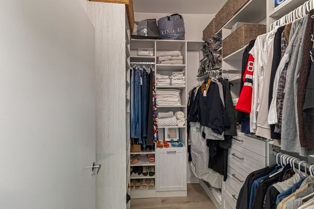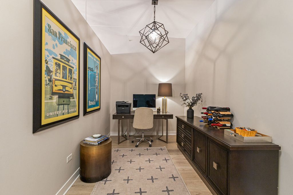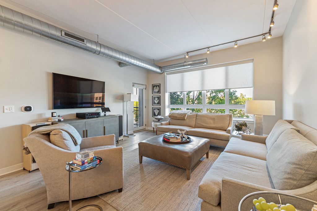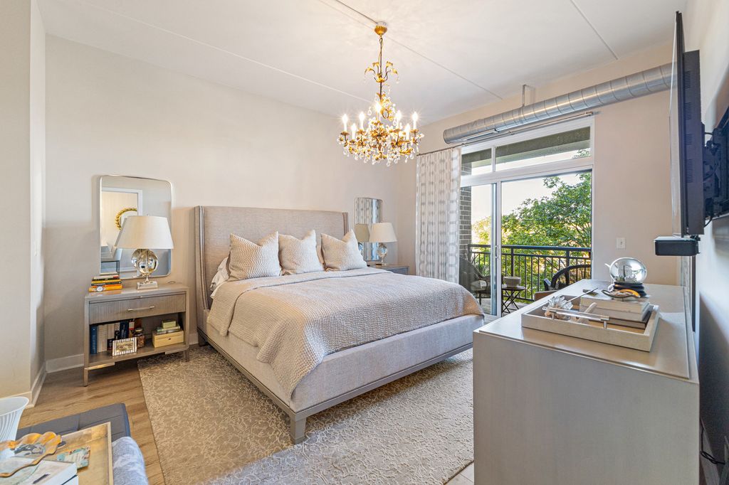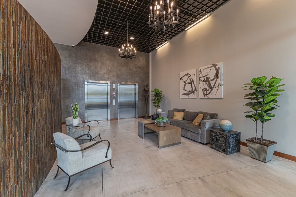 MOVE RIGHT IN TO PERFECTION IN THE POPULAR 450 VILLAGE CENTER. THIS MODERN AND CHIC UNIT FEATURES 10 FT CEILINGS, OVERSIZED WINDOWS, 1 BEDROOM AND A DEN, GREAT STYLE, CONVENIENCE AND LOCATION. STUNNING WITH A REDONE KITCHEN, SLEEK SINGLE PIECE QUARTZ COUNTERTOP AND QUARTZ BACKSPLASH, NEW HIGH END STAINLESS APPLIANCES, HUGE ISLAND FOR CASUAL DINING. NEW RICH LVP FLOORS, FRESHLY PAINTED, NEW ELECTRIC BLINDS AND CUSTOM WINDOW TREATMENTS, IN UNIT LAUNDRY, NEW SMART THERMOSTAT, AND NEW LIGHTING. OPEN CONCEPT LIVING SPACE INTEGRATES KITCHEN AREA, DINING AND LIVING ROOM. THE CONDOS DEN CAN BE USED AS A SPARE BEDROOM, OFFICE OR DINING ROOM. THE GENEROUS SIZED PRIMARY SUITE INCLUDES WALK-IN CLOSETS WITH CUSTOM ORGANIZERS. A BRAND NEW, UPSCALE EN-SUITE MARBLE BATHROOM WITH AN OVERSIZED GLASS ENCLOSED SHOWER. THERE'S A LARGE COVERED BALCONY WITH ACCESS FROM LIVING ROOM AND PRIMARY BEDROOM, PERFECT FOR YOUR MORNING COFFEE, WITH AN ENJOYABLE VIEW OF THE ACTIVE VILLAGE CENTER. HEATED PARKING AND STORAGE CLOSET ARE INCLUDED. SECURE ELEVATOR BUILDING. SHOWS LIKE A MODEL.