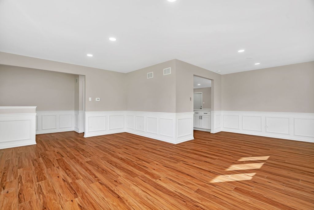 Welcome to 18233 Michigan Ct! This beautifully updated move-in ready ranch offers a perfect blend of style and comfort. The home features seamless LVP flooring, custom wainscoting, and an open layout that flows from the living room into the formal dining room, ideal for entertaining. The spacious kitchen boasts quartz countertops, brand new cabinetry, stainless steel appliances, and ample prep space, opening directly to the family room for effortless gatherings. Both bedrooms include dual closets, with the primary suite offering a private bathroom for added convenience. Main-floor laundry enhances functionality, while the full unfinished basement is humongous, freshly painted, and ready for your finishing touches. Recent upgrades include a brand new furnace, central air, water heater, kitchen cabinets, appliances, basement windows, and fully remodeled bathrooms with custom vanities. Perfectly situated as an end unit in a prime location close to shopping, dining, and more-this home is truly ready for you to move right in!