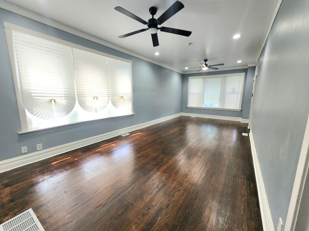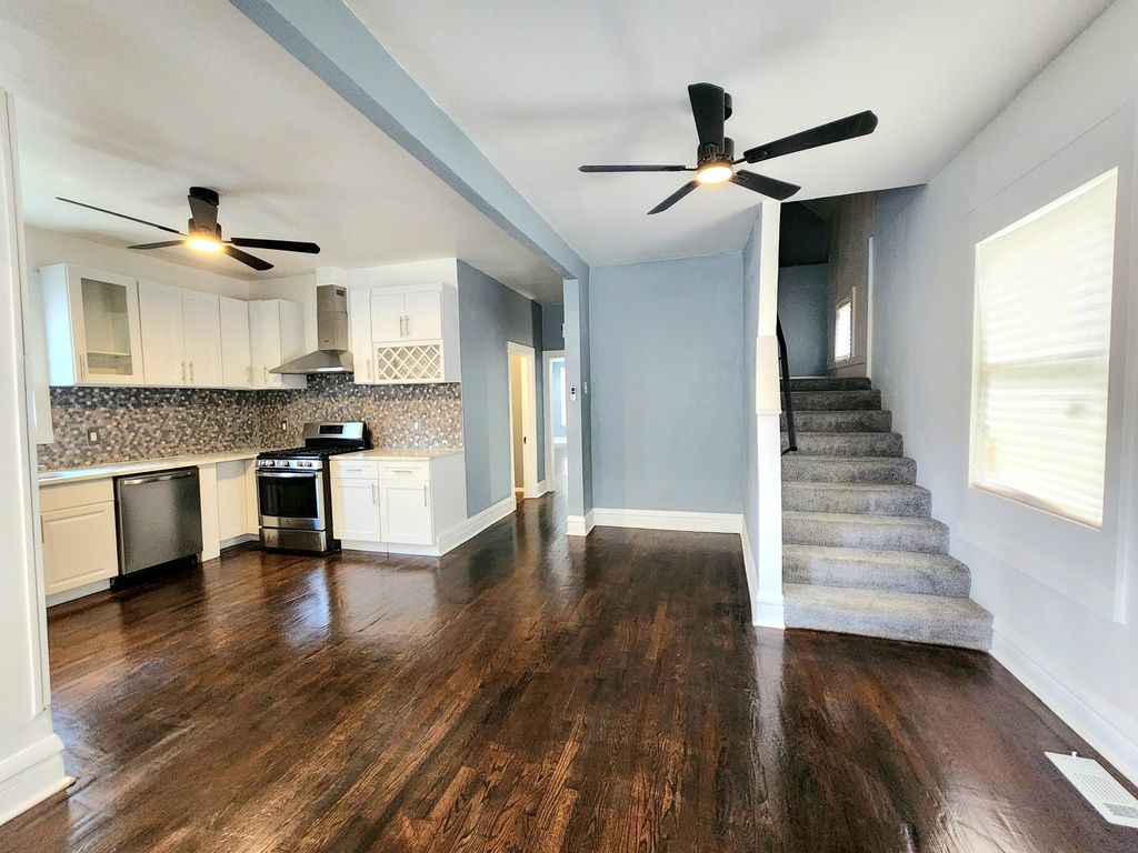 Welcome to this beautifully updated and spacious 5 bedroom 3-bathroom home with hardwood floors throughout, featuring a stunnning open-concept kitchen and dining area. Enjoy cooking in a kitchen equipped with stainless steel refrigerator, dishwasher and stove with a sleek wall mount range hood, standing cabinets with a wine rack, and elegant quartz countertops. The huge master bedroom offers a private retreat with a walk-in closet with a connecting bathroom. The fully finished basement includes a bedroom, laundry area with cabinets, generous storage space, bathroom and endless possibilities for entertainment or a home office. This home boasts all newer appliances a brand-new roof and HVAC system. Step outside to a huge backyard with patio area and a side yard-perfect for your next gathering. A detached 2-car garage is also included. Conveniently located near public transportation, schools, grocery stores, shopping areas and much more. Don't miss this gem-schedule your showing today!