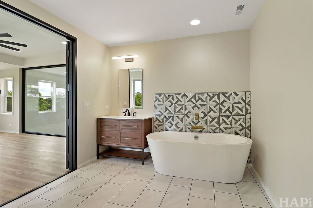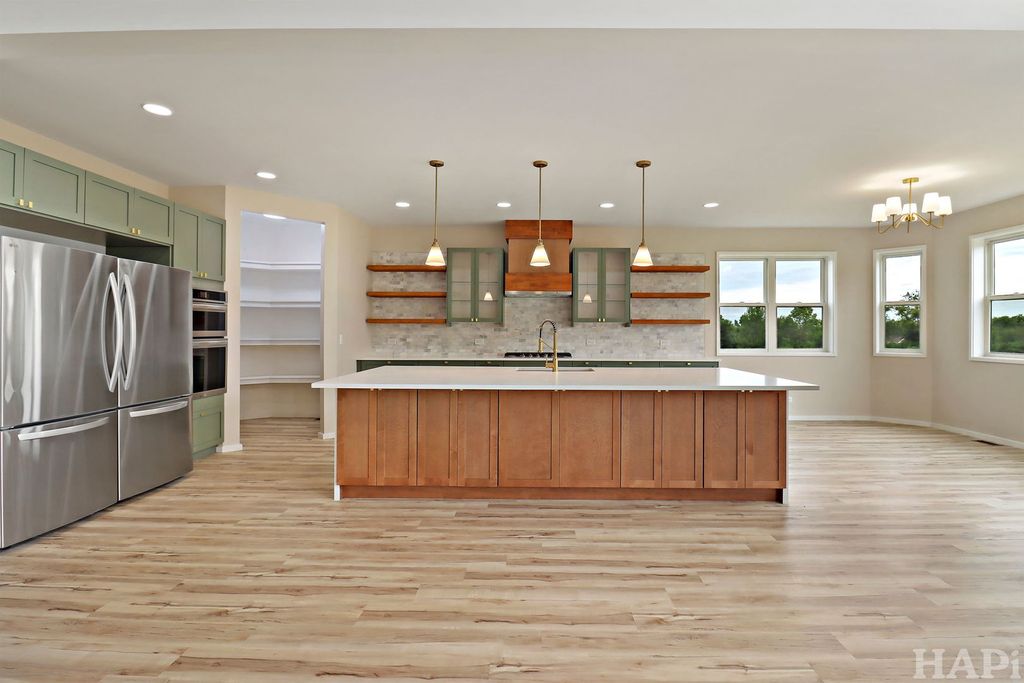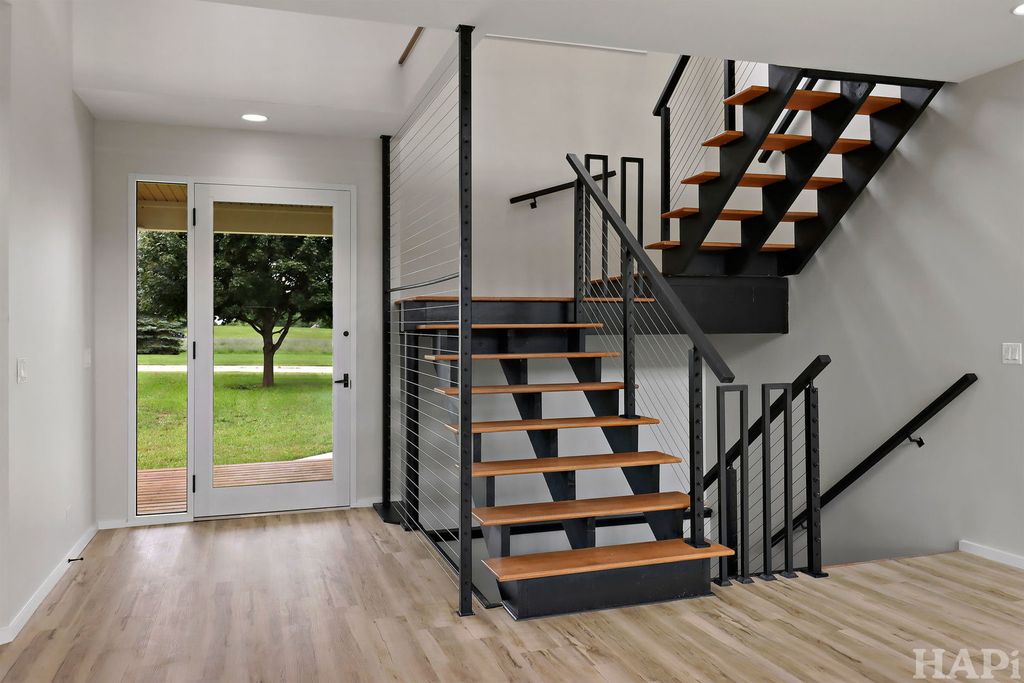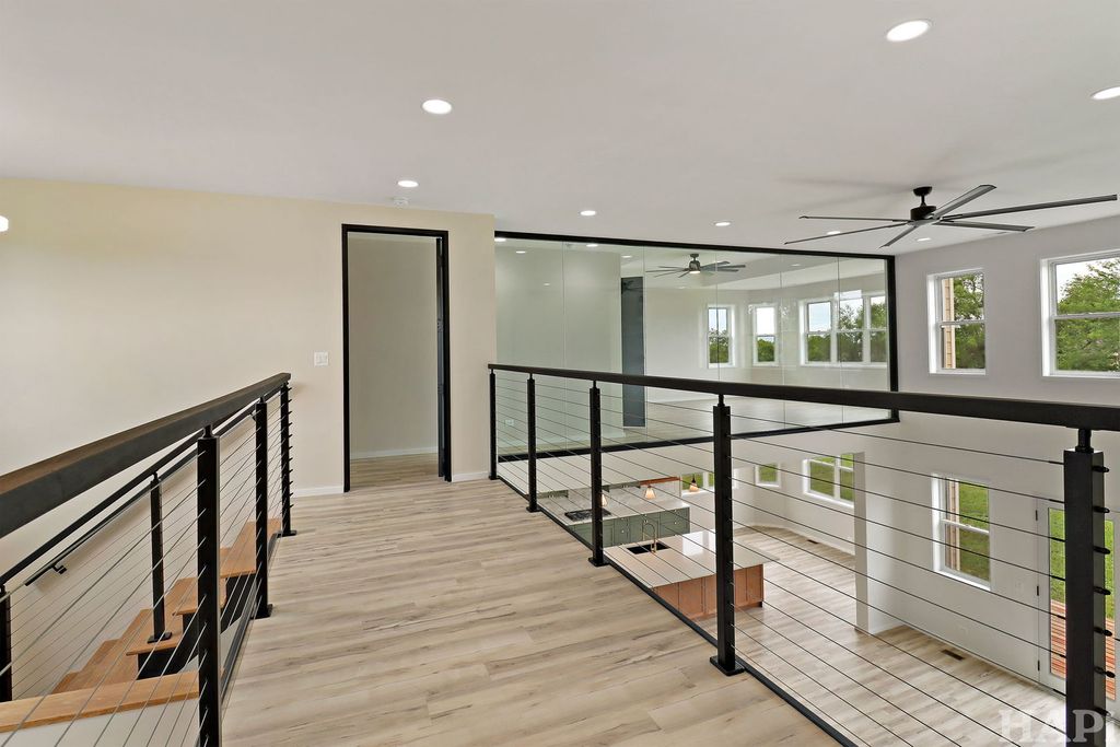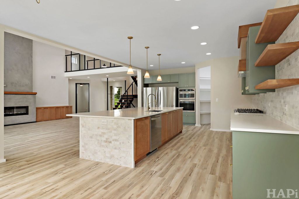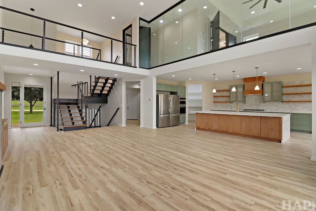 Brand-New in 2025 | Industrial-Chic Meets Modern Luxury. Step into this striking newly built 2025 masterpiece where industrial style blends seamlessly with modern elegance. Soaring ceilings, walls of windows, and sleek architectural lines create an awe-inspiring atmosphere throughout the open-concept floor plan. The heart of the home is a chef's dream kitchen with matte green cabinetry, open wood shelving, quartz countertops, and a massive island that makes entertaining a breeze. The floating metal staircase with wood treads adds a bold design statement, leading to a lofted walkway and spacious bedrooms. The primary suite is a true sanctuary with an entire wall of glass overlooking the dramatic two-story living room and fireplace-modern, bold, and breathtaking. Every bathroom is thoughtfully designed, including eye-catching tilework and modern finishes that feel straight out of a magazine. Looking for a home gym? This one delivers-a dedicated fitness room with top-of-the-line commercial rubber flooring offers the perfect space for your daily workouts. Additional highlights include a walk-in pantry, designer lighting, a huge walk-in closet with custom shelving, and a laundry/mudroom just off the garage. Set on a peaceful lot with no backyard neighbors, this home offers both serenity and style. This is not your average new construction-it's a work of art.