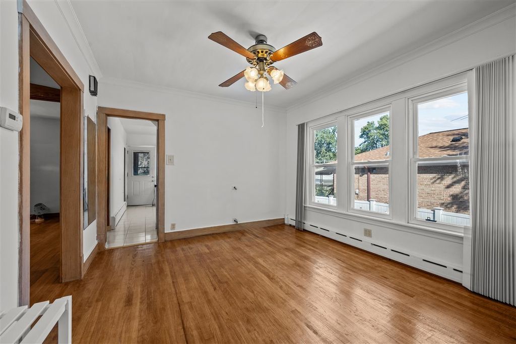 Well-maintained and upgraded Portage Park bungalow! This pretty white home with fenced yard is located on a quiet tree-lined street. Enter to find a welcoming enclosed porch with windows on three sides, and hardwood floors. The first floor features an open floor plan with a large central living area, hardwood floors and large windows. The sunny and spacious living room is open to the dining room. Nearby, there are two bedrooms with hardwood floors and spacious closets, an updated hallway bathroom with white fixtures, and an updated kitchen with white cabinetry and large walk-in pantry. From the kitchen, step onto the rear enclosed porch; it is a great spot to store coats and boots, and to enjoy views of the appealing rear yard! An interior staircase near the kitchen leads to the 2nd floor. It has a spacious family room, the 3rd bedroom and unfinished attic storage. The lower level has windows above grade, an expansive recreation area, the 4th bedroom, a full bathroom and large utility room. Don't miss this wonderful opportunity--a lovely Portage Park home that is convenient to EVERYTHING! Sold "AS IS".