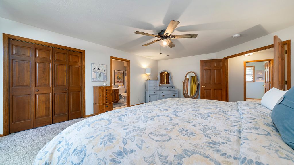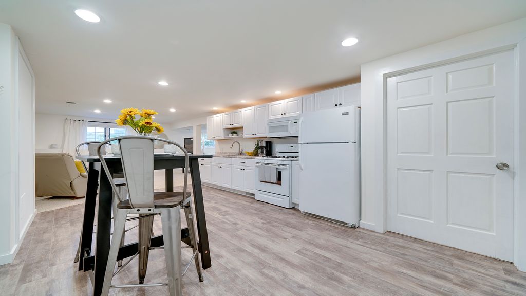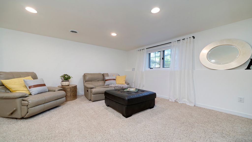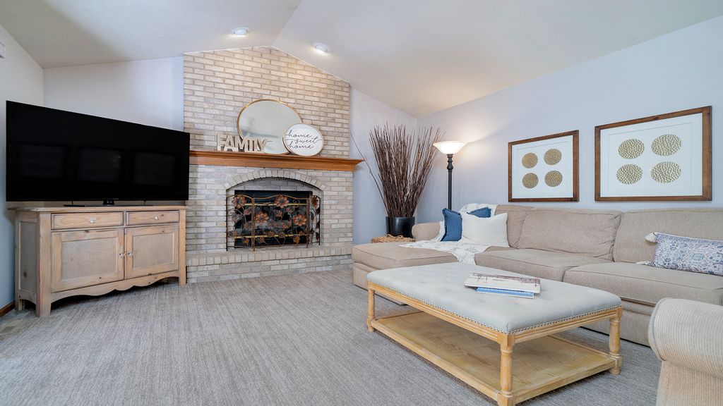 This gorgeous 2-story home offers standout curb appeal and thoughtful spaces throughout. Step inside the front entry with double closet and find a formal living room and a separate dining room, perfect for gatherings. The eat-in kitchen features stainless steel appliances, space for a large table, and sliding doors leading to the deck and backyard. Overlooking the kitchen is a spacious family room highlighted by a floor-to-ceiling brick fireplace with mantle and additional doors to a covered deck area.The main level also includes a convenient 1st-floor laundry and a half bath. Upstairs you'll find four bedrooms and two full baths, including a primary suite with ensuite. The partially exposed lower level is finished with a second kitchen, rec room, fifth bedroom, and full bath-ideal for guests or extended living. A 3-car attached garage completes the layout. Updates include: refrigerator (2 yrs), dishwasher (1 yr), kitchen renovation (2016), roof (2014), basement renovation (2018), furnace/AC (2011), water heater (2016),and an owned RO system with water softener. Added conveniences are a new sump pump, radon mitigation system, and a unique automatic bird feeder bin running outside. This home blends charm, functionality, and space for everyday living and entertaining.