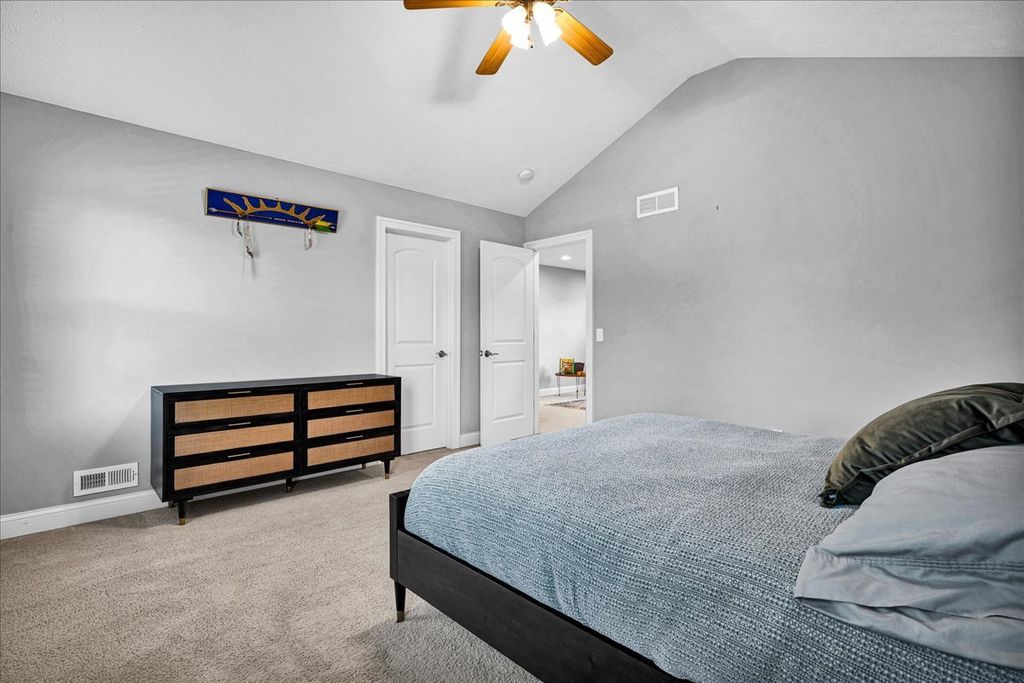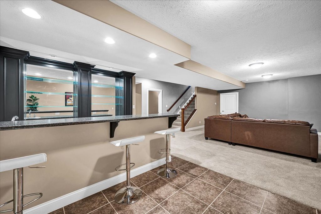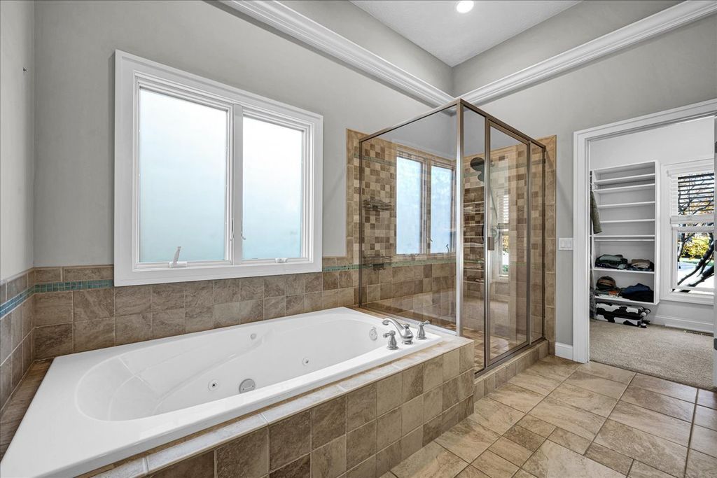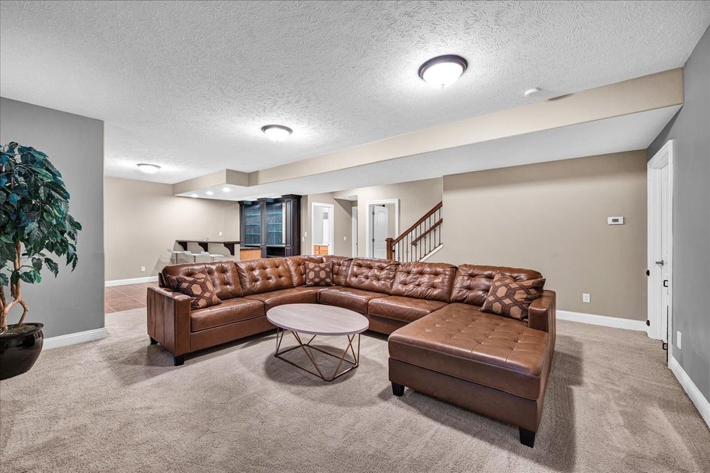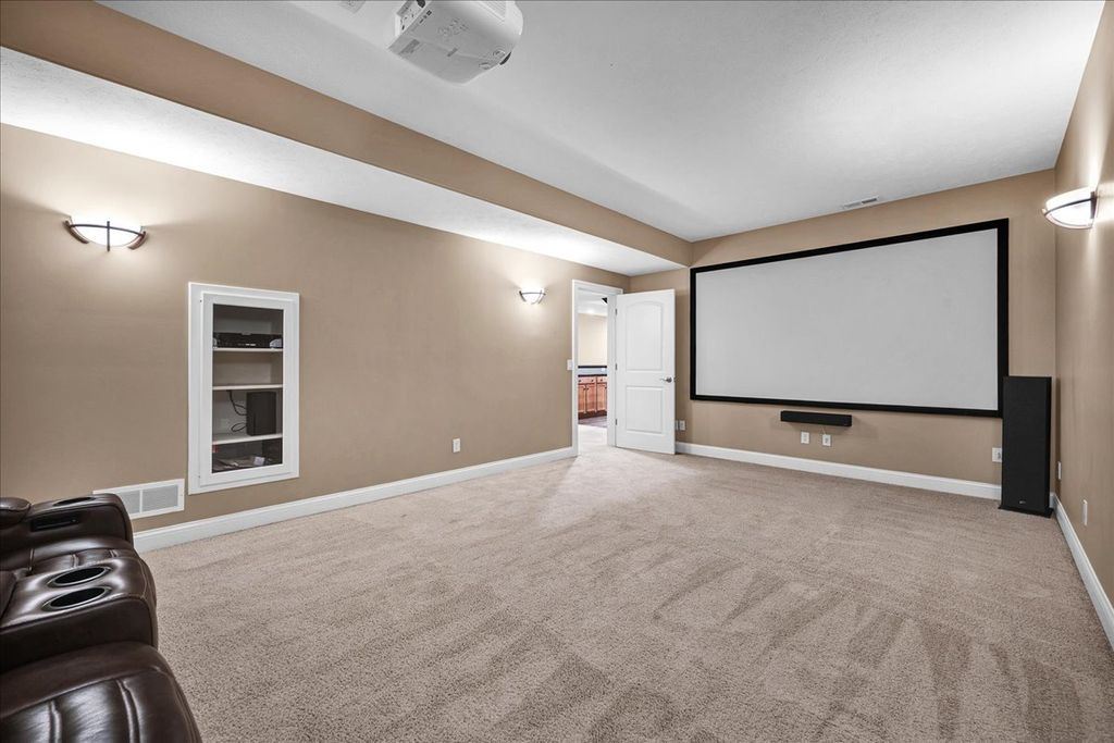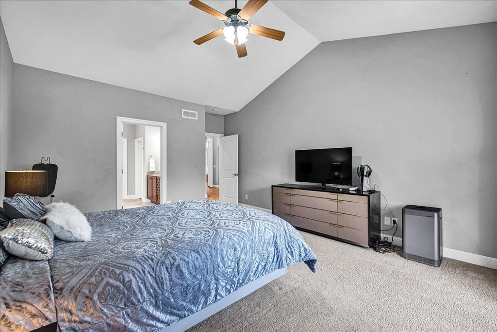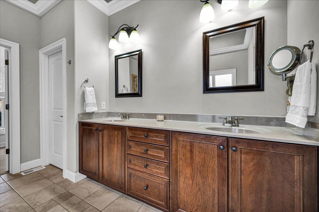 Step into timeless elegance with this stunning custom-built 1.5-story luxury residence, ideally located in the prestigious Royal Links subdivision. Home highlights and recent updates: high-end Anderson windows throughout, new Whirlpool Smart capable front load washer and dryer Oct 2023, Central Vac system, New Goodman high efficiency furnace 2023, New high efficiency Goodman .96 AC 2023 & air ducts cleaned 2023, New 5' Steel fence for backyard that's rust-resistant steel 2024, new updated sprinkler system includes new pump and new sprinkler heads in front and backyard 2023, new reverse osmosis, whole house water filter and Halo ion water conditioner purchased 2023. Every detail of this meticulously maintained home exudes sophistication-from the soaring two-story foyer and grand formal dining room with architectural columns, to the expansive great room showcasing a dramatic floor-to-ceiling stone fireplace framed by oversized Anderson windows. Designed for both everyday living and elevated entertaining, the chef's kitchen features an oversized island, granite counter-tops, custom 42" soft-close cabinetry, designer tile backsplash, high-end GE Profile Refrigerator, wall oven and Microwave oven. LG low-decibel dishwasher, and a reverse osmosis system (2025), all flowing seamlessly into a spacious walk-in pantry and triple Anderson sliding door. For your added comfort, the heating and cooling is zoned allowing you to adjust the temperature on the upper, main and basement levels of the home separately. The main-floor master retreat impresses with cathedral ceilings, a luxurious en-suite with jetted tub, tiled shower, double vanities, ambient lighting, and a generous walk-in closet. Upstairs offers three additional bedrooms, a full bath, and a versatile area ideal for a home office or relaxation lounge. The fully finished basement level has 9" ceilings throughout and is an entertainer's dream-complete with a sleek wet bar, theater room pre-wired for surround sound and projector, a 5th bedroom, full bathroom, as well as has an expansive family room. Outdoor living is equally refined, with a professionally landscaped backyard, a rust-resistant steel fence, brand-new sprinkler system with new heads and pump, large patio with elegant paver walls, and space for children to play under a canopy of mature trees. This home is the perfect blend of luxury, comfort, and modern convenience.