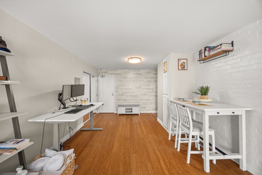 THE MILLION-DOLLAR VIEW! Perched on the 9th floor, this stunning 1 bed / 1 bath condo offers unobstructed, full east exposure with breathtaking views of the city and Lake Michigan from both the living room and bedroom. Step into a bright, open space featuring bamboo hardwood floors, a kitchen with brand new stainless steel appliances, counter space, and room for a breakfast table or island. The living area flows seamlessly to a private balcony with gas grill-perfect for entertaining against a skyline backdrop. Enjoy a newly remodeled bathroom with all-white ceramic tile, soaking tub/shower combo, modern vanity, and new fixtures. Convenience meets style with a brand-new stackable washer/dryer in-unit and excellent bedroom closet space. Indoor pool, sauna, roof deck, gym, small fitness room available for every day activities. Unbeatable location-steps from the lakefront, shopping, restaurants, and transit. Heated garage parking included. Building has newly updated electrical, tuckpointing and facade. Don't miss it.
