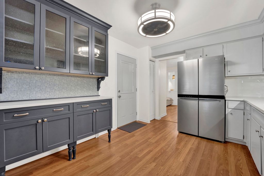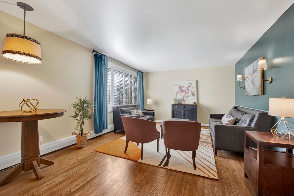 OPEN HOUSES CANCELED. Prime Ravenswood Corner 2 bed 1 bath high 1st floor charming mid century modern condo. Located on a tree lined street just North of Lawrence and West of Ashland, you can walk 10 minutes or less to 3 different train lines - Brown, Red or Metra! Just a skip Northeast to the heart of Andersonville and just West of Uptown's historic strip and East of the square in Lincoln Square. Great spot to be for those who want an easy commute while still having a quiet living space. A comfortable/homey well designed and remodeled interior help to show off all the light that 3 exposures bring into this corner cutie. Customized kitchen with updated appliances, spacious bright living room with additional dining space, hardwood floors, 2 large bedrooms of equal size and custom closets, built-ins, and window features throughout. HUGE private storage in the basement along with bike storage and laundry. Well funded and run building and association. Laundry is shared in basement and parking is behind the building exterior off alley, just around the corner from the unit's back door. Parking is not conveyed with the sale.