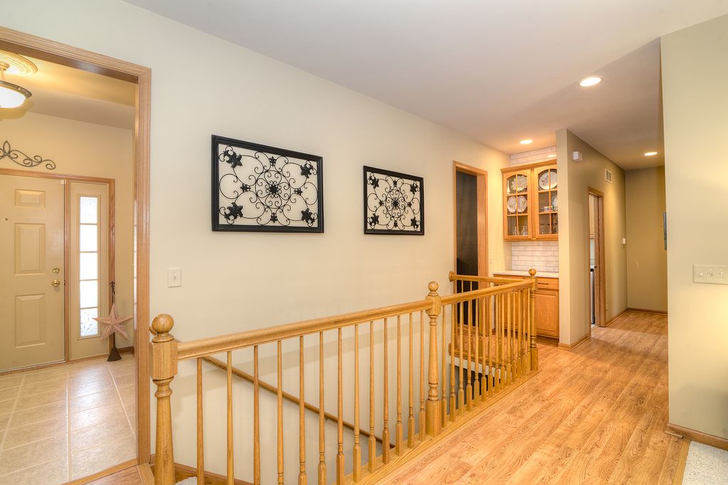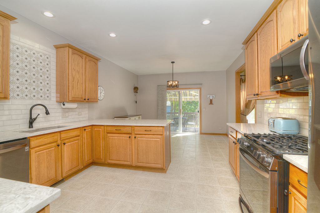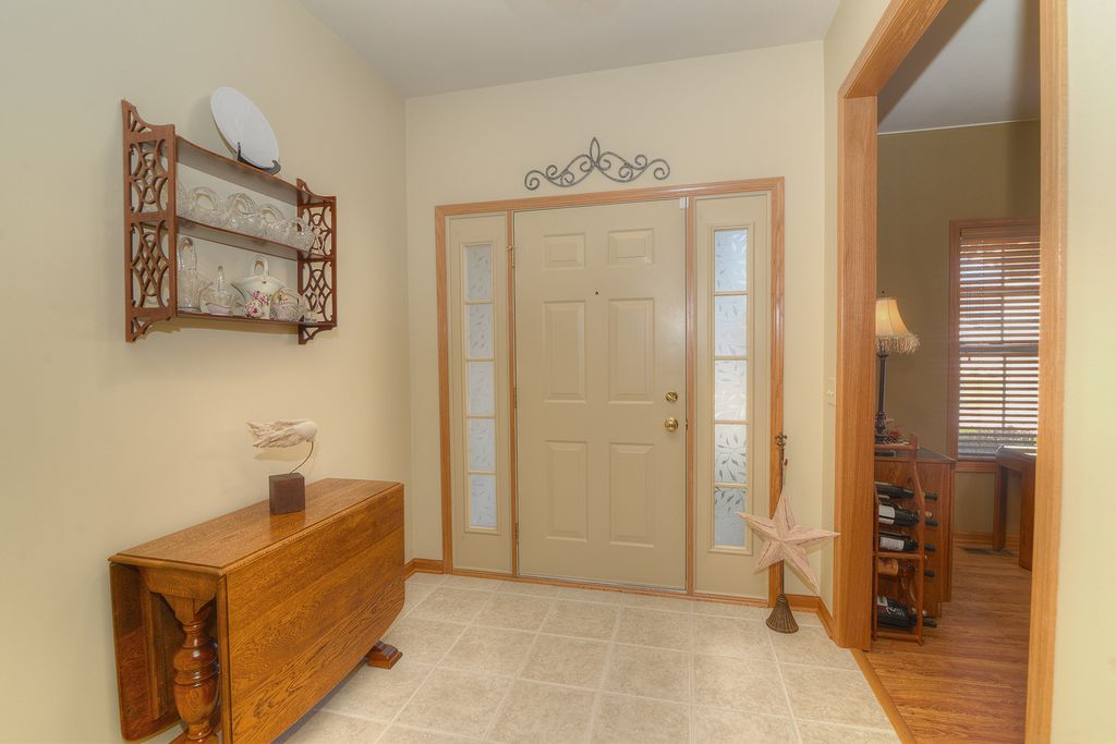 Exceptional Value in this gorgeous brick and vinyl ranch home in the maintenance free community of Madison Homes! Gorgeous, open floorplan with 9 foot ceilings. Gourmet kitchen with 42" cabinets, under cabinet lighting and crown moulding, quartz countertops, peninsula with breakfast bar, black stainless steel LG appliances (2022), glass subway tiled backsplash and touch faucet. Huge eating area with sliding glass doors lead to your beautiful yard complimented with a deck, retractable awning, mature trees and professional landscaping. Butler's pantry with quartz countertop is adjacent to the formal dining room. Master Bedroom Suite includes a walk-in closet with closet storage shelving system and double sink vanity. A pocket door separates the awesome, huge bath with whirlpool tub, palladium window, separate shower and linen closet. The split 3 bedroom floor plan offers privacy. 2nd full bathroom with a linen closet. 1st floor laundry room with Kenmore washer & dryer (2016), utility sink, closet, cabinetry and countertop. Recessed lighting in the living room, kitchen, butler pantry, hall and master bath. Ceramic tile in the kitchen, bathrooms, foyer & laundry room. English basement with 9 foot ceilings. New Carrier A/C and Furnace (2025), radon mitigation system, 2 sump pumps. Newer roof (2022). Freshly cleaned carpeting. Enjoy a carefree lifestyle and we look forward to welcoming you to your new home!