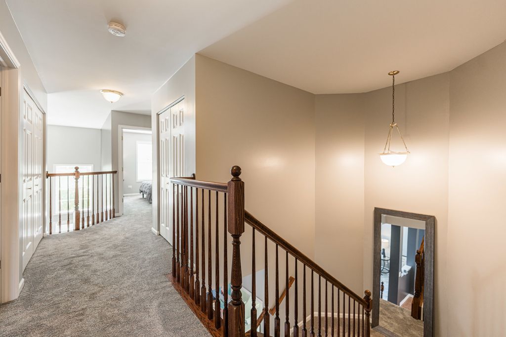 Private & Elegant Townhome in a Peaceful Setting. This beautifully appointed 2-story townhome offers a perfect blend of luxury and comfort in a quiet, private location. Step into a dramatic two-story living room ideal for both relaxing and entertaining. The remodeled kitchen showcases modern finishes and opens to a charming eating area that leads to a private patio overlooking serene open space. Recent updates include a brand-new furnace, air conditioner, and refrigerator (2025), ensuring both comfort and efficiency. With 3 spacious bedrooms, 2.5 updated bathrooms, and convenient second-floor laundry, this home is thoughtfully designed for modern living. A full basement provides generous storage or the potential for additional finished space. Move-in ready and filled with stylish upgrades this home is ready to welcome you.