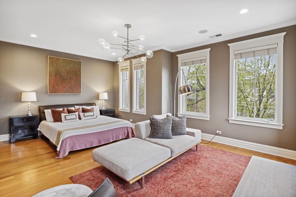 Beautiful and elegant modern corner 6bd/4.5ba home in the heart of Wicker Park's historic Hoyne Ave. Bright, spacious, and professionally designed living, sitting, and dining rooms, beautiful wood burning fireplace, high ceilings, and hardwood flooring on all three upper levels. Kitchen feature high-end stainless-steel appliances, and concrete countertops. Kitchen opens to the family room with a gas starting fireplace. Ride the central elevator to the second floor to view four bedrooms, library, and laundry rooms. Take the elevator to the third floor to enter the owner's suite with a large walk-in closet and primary bathroom and doors going out to your private outside sanctuary area. Take the elevator down to the lower level and enjoy your steam shower, sauna, gym, billiard and media rooms or relax a bit in your guest suite. Home features 3 beautiful finished outdoor spaces with amazing views of downtown skyline and sunset. Walking distance from blue line and all of Wicker Park and Division Street nightlife.
