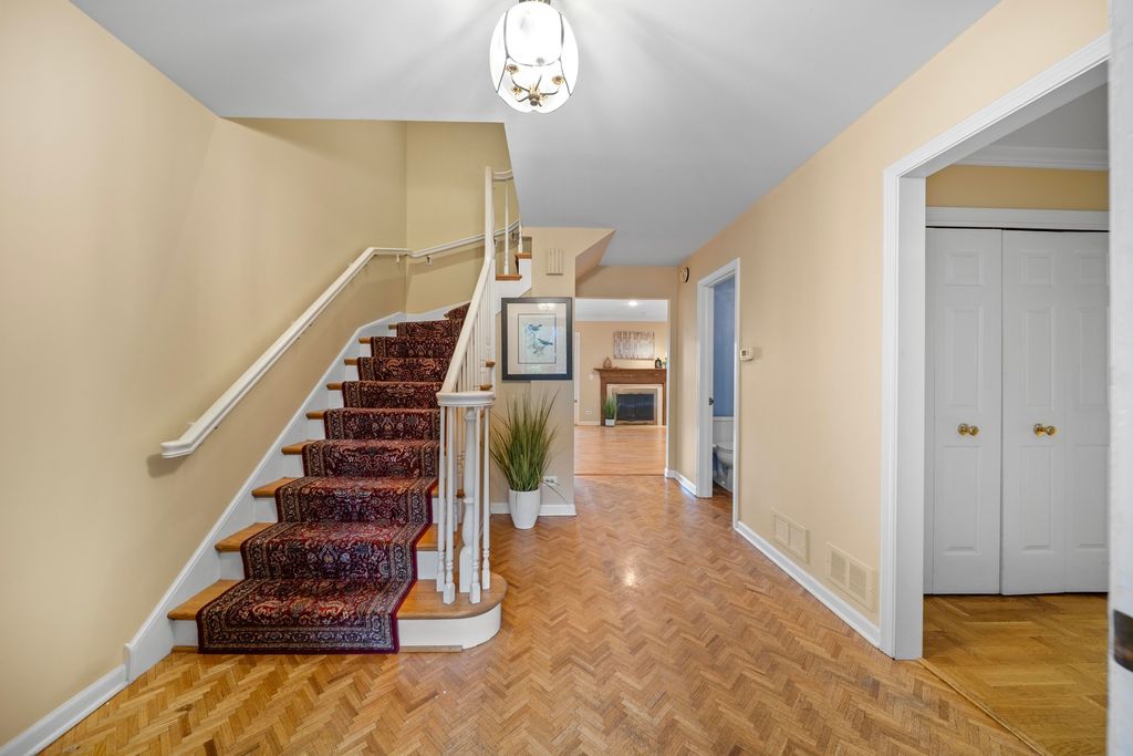 Nestled in the coveted Ancient Tree community of Northbrook, this beautifully appointed townhome offers timeless design, tranquil pond views, and a lifestyle of effortless sophistication. Step inside to discover a stunning herringbone hardwood foyer that opens to sun-filled living and dining spaces, both framed by double sliding glass doors that lead to a private deck overlooking the water. The living room exudes warmth with a granite-surround fireplace and crown molding, while the adjacent dining room is perfect for entertaining with ease. The Family Room/Den features a wet bar and storage for games! The chef's kitchen is as functional as it is elegant, showcasing granite countertops, a farmhouse sink, stainless steel appliances, and a generous walk-in pantry. Upstairs, the serene primary suite is a true retreat with a private balcony overlooking the pond, walk-in closet with organizers, and a spa-inspired bath featuring dual vanities, granite counters, and a tiled shower. Bedroom Two also features a balcony with stunning views and a spacious closet. Bedroom Three is quite capacious and shares neutrally updated hall bath. The lower level adds even more living space with a spacious family room, fantastic built-ins, abundant storage, and laundry area. Other impressive features include: attached two car garage with epoxy flooring, Powder Room and more! Enjoy peace, privacy, and resort-style amenities including a clubhouse, outdoor pool, pickleball and tennis courts, walking paths, and meticulously landscaped grounds punctuated by waterfalls and fountains. Maintenance-free living never looked-or felt-so good.