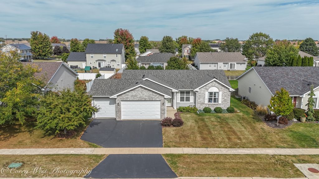 Enjoy single level living in this 3 bedroom 2 full bath ranch in a highly desired location! This tucked away neighborhood is quiet and peaceful yet very close to all of the amenities and stunning parks Belvidere has to offer. As you pull up, you will be greeted by the adorable and well maintained exterior with partial brick front. This home boasts a 3 car garage with service door and easy to maintain professional landscaping. The roof was new in 10/24 with upgraded shingles that could qualify for a homeowners insurance discount. Walking in the front door, the beautiful vaulted ceilings will make this space feel very open. Laminate flooring has been updated throughout. Gather around and cozy up in front of the fireplace this holiday season. A vaulted ceiling kitchen and dining room combo continue the open feel of this home. The kitchen sink and all appliances are stainless steel including an induction cooktop for superior temperature control. The kitchen and dining luxury vinyl flooring was updated in 2023. Garbage disposal is newer (2023). All interior doors are solid wood and 7.5 ft. tall- a very unique feature! All bedroom doors and master bathroom door are 36 inches wide. Wainscoting has been installed throughout. As you wonder down the hallway, you will see a full bathroom that has been completely remodeled (2020) with beautiful tile throughout, an easily accessible walk in shower with grab bars and a rain water faucet, touch-less sink faucet and tankless toilet. The master bedroom is very large with it's own full bathroom and walk in closet. The third bedroom has been converted to a laundry room with newer washer and dryer but both can easily be moved back by the mudroom off of the garage, if preferred. There is plenty of closet space in the bedrooms, hallway and foyer. Heading down to the basement, there are partially finished walls that have been thoughtfully framed to allow for an opening between both spaces, if desired. Bring your ideas to life by finishing this ample space or leave as-is, perfect for a play room or home gym. Basement floor tiles and carpet will stay. Furnace, air conditioner and humidifier were upgraded in 2022. The HVAC duct work has been sealed for extra efficiency. New 50 gallon water heater installed 2023. Active radon mitigation system installed in 2022. The newer 7ft wood fence installed 8/24 gives this backyard ultimate privacy and allows you to peacefully enjoy nature from the back patio. All big ticket items have been recently updated leaving this solid home ready for it's new owner to enjoy.