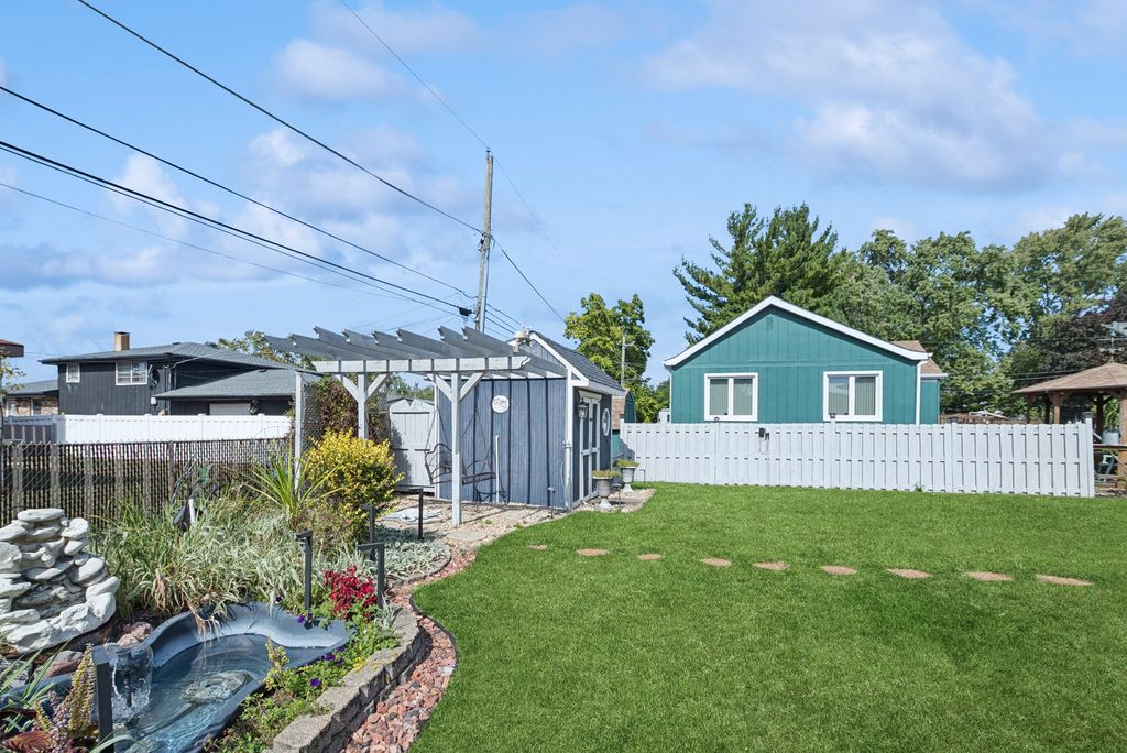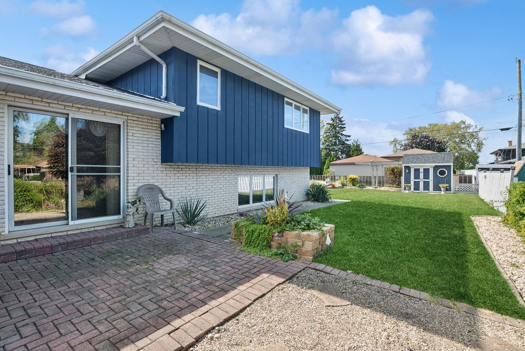 Beautiful tri-level home welcomes you from the minute you walk through the lovely front door. Enjoy the living room boasting a bow window, dining room, and kitchen equipped with stainless appliances, and built in hutch. Sliding glass doors open to a paver patio. Upstairs are three bedrooms all with ceiling fans, and a large full bathroom. The lower level offers more space including family room with gas fireplace, bar area with cabinets, modern bathroom with shower, and a big laundry room. The back yard is extra special with shed, seating area and serene water feature. Attached 2 car garage rounds out this great home that is conveniently located near school, shopping, interstate, etc. Solid home being sold as is.