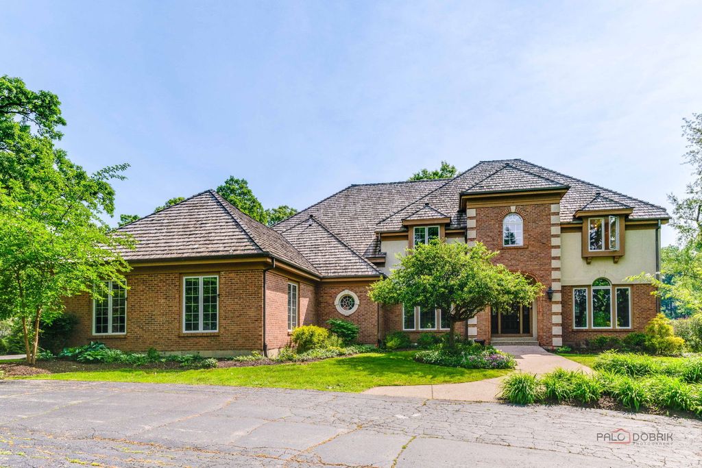 Welcome to an exquisite Tudor-style residence nestled in the prestigious enclave of "Wynstone". Set on a sprawling 46,822 square foot corner lot, this architectural gem offers 4,539 square feet of refined living space. This home boasts 5 spacious bedrooms and 4 luxurious bathrooms plus 2 guest bathrooms, perfect for both comfort and privacy.The residence is graced with a sophisticated layout featuring two fireplaces, ideal for cozy evenings. The gourmet kitchen is a chef's delight, complete with granite countertops, double ovens, brand new Thermador 48"French Door refrigerator, new Thermador downdraft venting for cooktop and a central vacuum. Entertain effortlessly with a wet bar and an elegant dining area, complemented by gleaming hardwood floors. The full finished basement, accessible via a dual staircase, provides versatile living options and direct access to the oversized three-car garage. New circular driveway leads the way into your 3 car garage with brand new epoxy coated flooring and loads of storage, Enjoy the extra additional parking options. Outdoor enthusiasts will relish the amenities: whether it's a match on the tennis court, a swim in the communal pool, or relaxing in the common outdoor space. Positioned between the 16th and 17th golf holes, this home offers unparalleled lake access and sweeping views. Modern comforts are ensured with central air conditioning, a security system, and a comprehensive air purification system. Lake Zurich schools are sure to please all family members. Experience an exclusive lifestyle within this gated community, where elegance meets function.