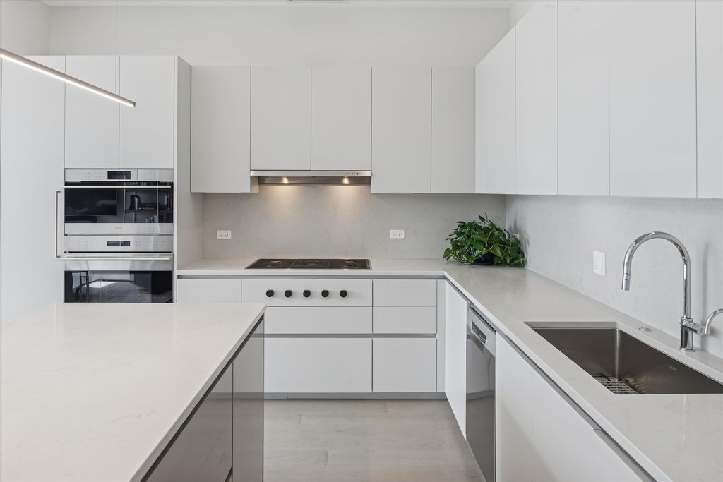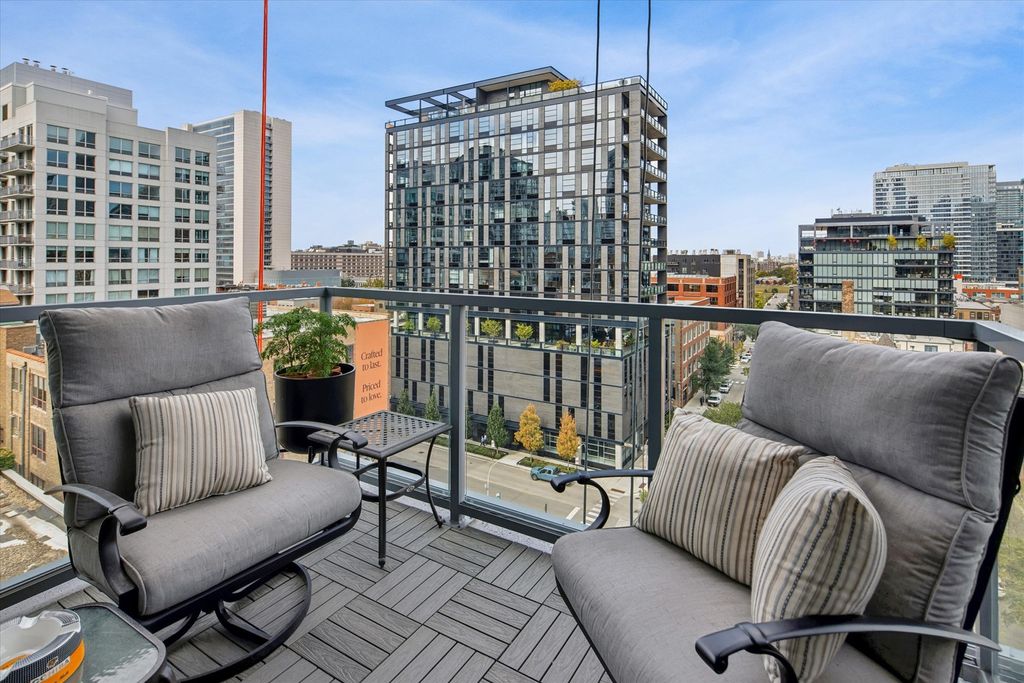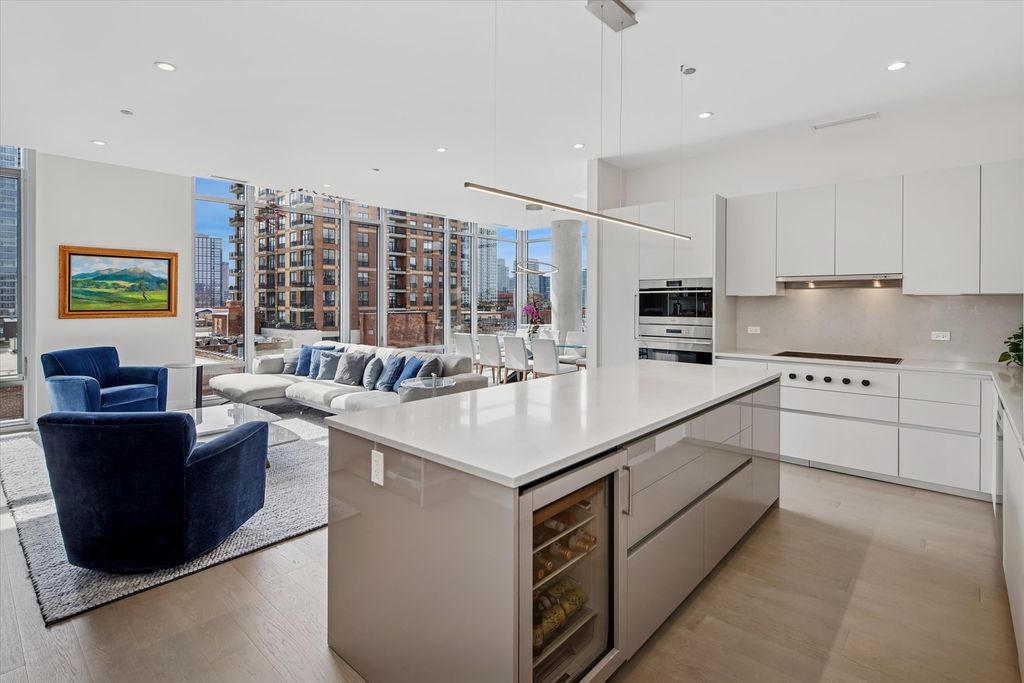 2 GARAGE PARKING SPACES INCLUDED! First high floor corner unit available since building's completion in 2019! This spectacular River North home is situated in one of Chicago's most dynamic neighborhoods. Featuring an expansive layout with two private balconies, this residence features floor-to-ceiling, wall to wall windows offering unobstructed urban views and abundant natural light. Enjoy ten-foot ceilings, hardwood floors, and custom built-ins throughout. The chef-inspired, open kitchen is outfitted with sleek Italian cabinetry, marble countertops, and top-of-the-line Wolf & Bosch appliances-perfect for both everyday living and entertaining. An impressive primary suite includes two walk-in closets, a private terrace, and a spa-caliber bath for the ultimate retreat. Two additional generously sized bedrooms-one with an ensuite bath-offer versatility and comfort. A full laundry room and exceptional storage complete this exceptional home.