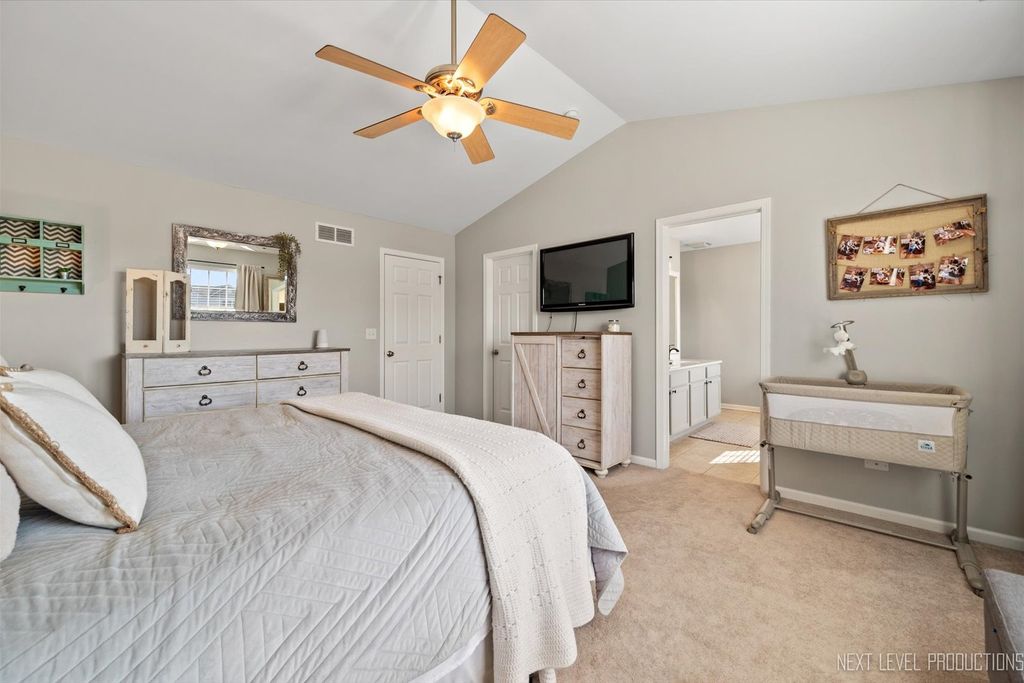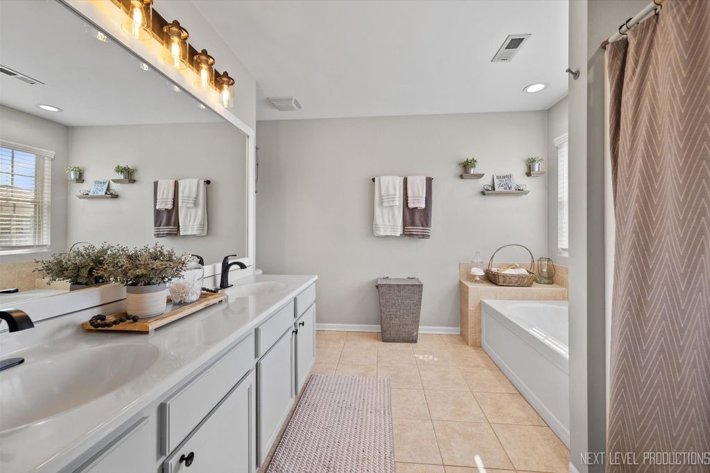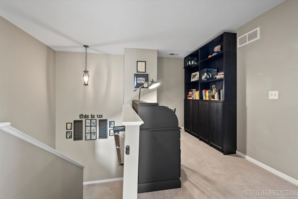 Picture perfect duplex ready for its next owner! The open concept floor plan makes everyday living effortless and entertaining a delight. Rich oak hardwood floors flow throughout the main level. The living room features a cozy corner fireplace with a custom shiplap surround, while the kitchen is a showstopper with 42" cabinets topped with crown molding, granite countertops, stainless steel appliances, breakfast bar, and eating area with a sliding glass door that opens to a beautiful paver patio. Upstairs, the versatile loft is perfect for a home office, playroom, or whatever your lifestyle calls for. The primary suite boasts a vaulted ceiling, a spacious walk-in closet, and a luxurious en-suite bath with dual sink vanity, soaking tub, and separate shower. Two secondary bedrooms share a full Jack & Jill bath, and the convenient 2nd floor laundry makes chores a breeze. The finished basement offers incredible extra living space with room to relax, host, or work out, plus a half bath for added convenience. A 2-car attached garage and a nice-sized yard complete the package. Enjoy outdoor living on the stunning paver patio while overlooking your private yard. Located in charming Elburn, you'll love the small-town feel with modern amenities and easy access to shopping, dining, hospital and METRA station that is only minutes away!