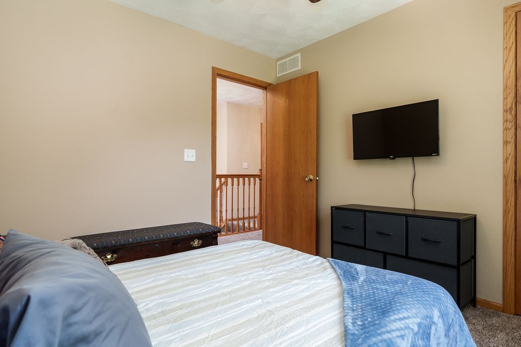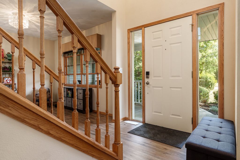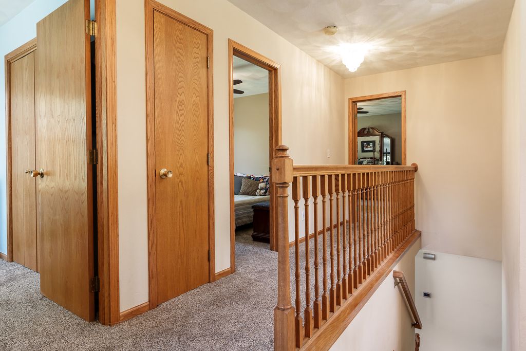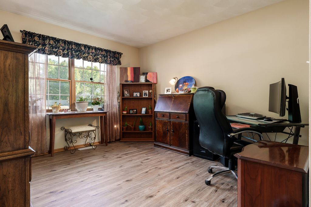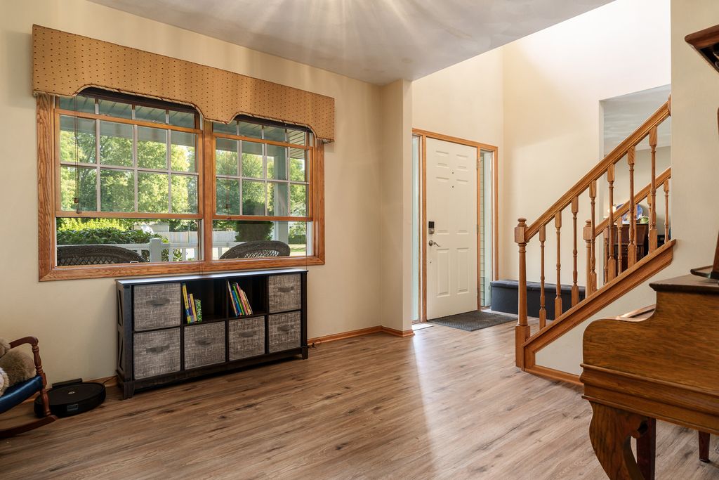 Welcome to this beautifully maintained 2-story home offering over 2,700 sq. ft. of finished living space in the heart of Roscoe. Featuring 4 bedrooms, 2.5 baths, and a spacious 3.5-car garage, this property combines comfort, style, and functionality. The exterior boasts a new roof (2023), mature trees, a fenced backyard, and a large deck perfect for entertaining. A charming covered front porch invites you to relax and enjoy the seasons. Inside, you're welcomed by a dramatic 2-story open spindle double staircase. The main level is finished with luxury vinyl plank flooring, while the second floor features new carpet throughout. A versatile front living room currently serves as an office, complemented by a formal dining room, spacious family room, breakfast area, and kitchen. The family room features a wall of windows that bring the outdoors in and a cozy gas fireplace to warm up to during cold months. The kitchen offers oak cabinetry, a center island, and newer refrigerator and dishwasher. There is 1st floor laundry for convenience. The garage is finished off with lots of cabinetry. Upstairs, all four bedrooms are generously sized. The impressive primary suite provides over 200 sq. ft., a walk-in closet, double vanity, newer soaking tub, and separate shower. The finished lower level includes a large rec room plus an additional flex space ideal for an office or hobby room. Recent updates include a new water softener (2024), R/O system, furnace (2021), and central air (2021). The first-floor powder bath has been updated as well. Located in the desirable Hononegah School District, this home is move-in ready with modern updates and timeless appeal. This one is a must see!