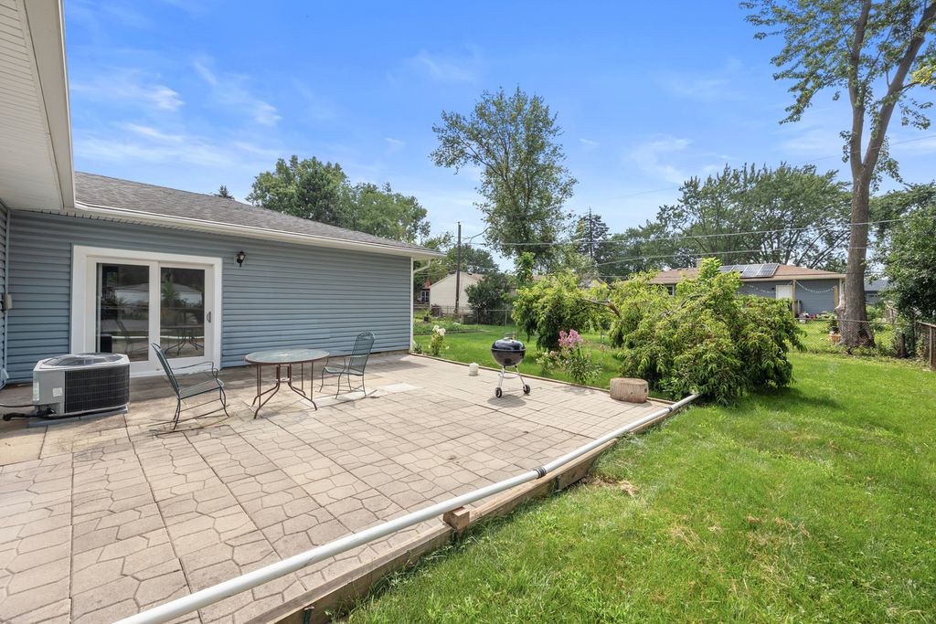 This house is ready for you to move in and features 4 bedrooms and 1.5 bathrooms. You'll love the large addition, which includes a bedroom, a spacious family room, and a bonus den or office space. The kitchen is a standout with its granite countertops, white subway tile backsplash, and stylish wood cabinets. Brand-new washer and dryer with pedestal boxes are also included for your convenience. The home has new laminate wood floors throughout, can lights, and fresh paint. Both bathrooms have been updated with new vanities, lighting, and mirrors. Plus, you'll have peace of mind with the newer furnace, AC unit, and water heater.(2020), insulated crawl space with 5 inches concrete (2016),New roofing insulation (2025) and Leaf Guard gutters (2021) Outside, enjoy the gorgeous front and back landscaping with Pear trees as well as plenty of white Hydrangeas and a large fenced-in yard perfect for outdoor fun. This home is just minutes from the Elgin O'Hare Expressway (390), Metra, and shopping centers. It's located in the desirable Bartlett High School area. Ready to see your new home?