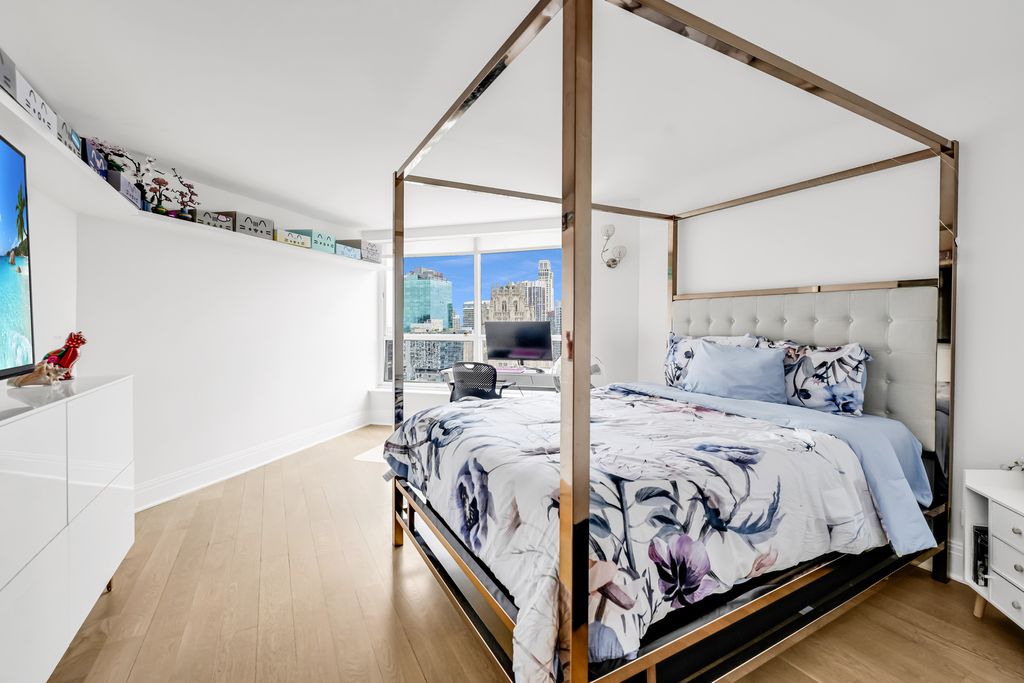 This extraordinary residence seamlessly combines multiple units into a single, stunning home, offering sweeping views from north to east to south, capturing the Chicago skyline, Lake Michigan, and the Chicago River. The home features 4 spacious bedrooms (3 ensuite) and 4 full baths, each equipped with high-end fixtures and wall-hung toilets. Upon entry, a grand foyer greets you, featuring ample space, an innovative 360-degree rotating shoe closet, and walls ideal for showcasing artwork. The north hallway leads to a custom coat closet, laundry room, the 2nd bedroom, and the remarkable 900 sqft Master Suite. The south hallway provides access to the 4th full bathroom, 3rd bedroom, and concludes with the sun-filled 4th ensuite bedroom. The home includes a custom insulated, cedar-lined wine closet for your extensive wine collection. The main living room, perfect for entertaining or relaxation, features a central coffee and wet bar with expansive east-facing windows framing stunning, unobstructed views of Chicago's cityscape, lake, and river. The chef-inspired kitchen boasts a substantial island with seating, a prep sink, smart appliances, touch faucets, extensive storage, and inspiring sun filled Views facing East. Nearby, the dining room provides an intimate and sophisticated setting with picturesque southeast views. Indulge in the expansive Master Suite, a private sanctuary offering captivating north and east vistas, space for seating, and a desk area. Luxurious features include dual sinks, a separate water closet with a Toto wall-hung bidet toilet, a deep soaking air and light therapy tub, and a 40 sq ft walk-in STEAM shower with 4 functions. The master closet includes custom his-and-her sections, a 360-degree rotating shoe rack, and room for a home office or workout area. The 2nd bedroom provides an ensuite bathroom, large walk-in shower, Toto bidet toilet, custom cabinetry, and direct eastern views of the iconic Tribune building. The 3rd bedroom, currently a cozy TV room, boasts remarkable southern views, including the Chicago River and prominent architectural landmarks. The 4th ensuite bedroom enjoys abundant sunlight and southern exposure, with custom closets, a 360-degree rotating shoe rack, deep soaking air tub, custom lighting and captivating city and river views. Elegant 5" wide plank WHITE OAK floors, Porcelanosa bathroom tiles, custom cabinets, quartz countertops, all new electric and plumbing complement this home. Sophisticated custom closets, including four 360-degree rotating shoe racks, and 120 smart-controlled LED recessed lights throughout, enhance convenience and comfort. The residence is fully wired for ethernet and centralized smart home connectivity. Enjoy panoramic views of iconic Art Deco buildings such as the Tribune Tower, Wrigley Building, Jewelers Building, and London Guarantee Building, all easily visible from your windows. Ideally located near Michigan Ave shopping, Northbridge Mall, and the Apple Store-truly a must-see property. River Plaza is a full-amenity building offering exceptional conveniences, 24-hour door staff, on-site management and maintenance, a fitness center, indoor pool, hot tub, sun deck, package room, hospitality room, and an on-site laundry. Ideally situated, you will appreciate the building's prime location within walking distance to the Chicago River, Lake Michigan, the Magnificent Mile, premier dining, high-end shopping, and an array of vibrant attractions. RARE BONUS OPPORTUNITY: Purchase the highly upgraded adjacent Jr. 1-bedroom unit-perfect as a guest suite or investment property to offset your living expenses. This unit features high-end finishes throughout, a beautifully updated bathroom with a luxurious walk-in shower, and a modern kitchen boasting stunning southern views. Currently rented for $2100 and will offset your monthly overhead making this a unique setup.
