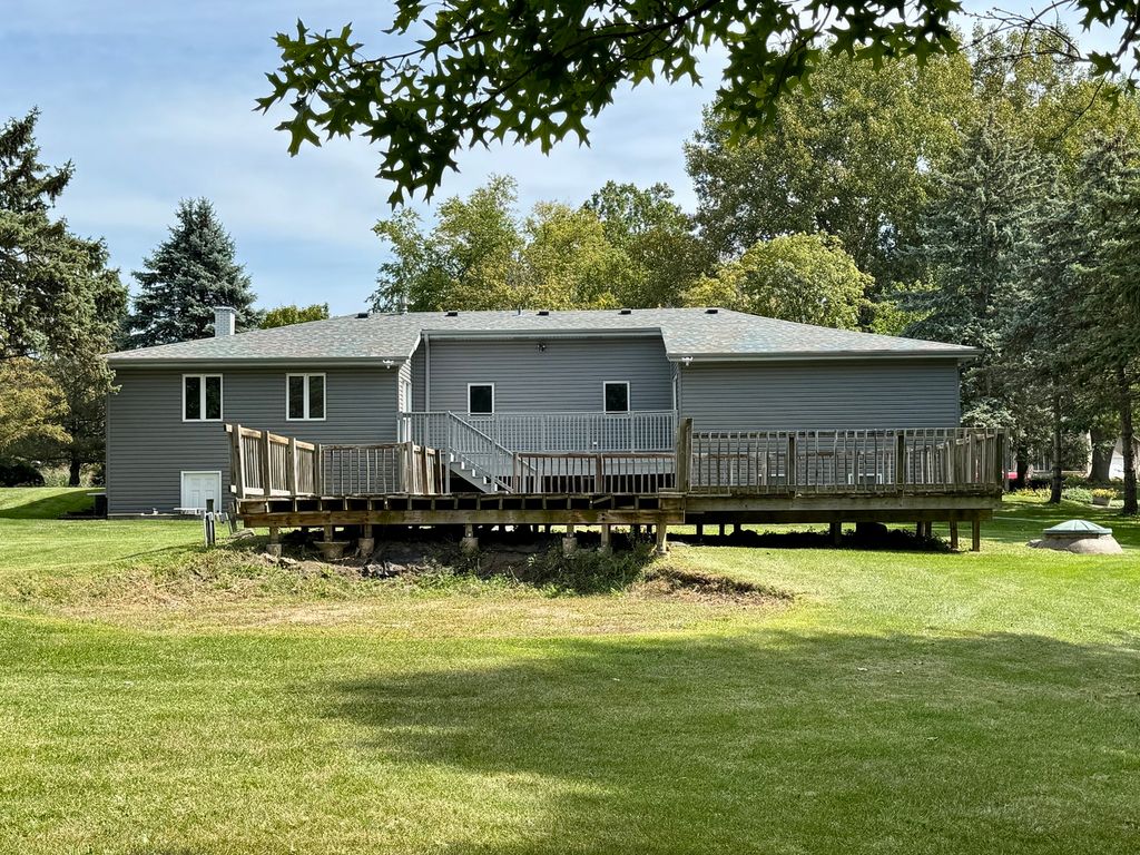 Must see!! Spacious 5 Bedroom, 3 Bath ranch with walk out basement on .6 acres. Walk out your back yard to the community pond and park. Plenty of updates in the last 3 years. New paint and flooring in the 2nd & 3rd bedrooms on the main level as well as the walk out basement in 2022. New roof, siding, ejection pit, sump pump and water heater in 2023. New asphalt driveway in 2024. New flooring and paint in the remaining rooms on the main level in 2025. Eat in Kitchen has maple cabinets and granite countertops, complete with island/breakfast bar and SS appliances. Property sold AS IS. Broker related to seller.