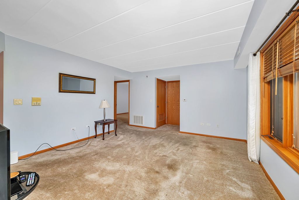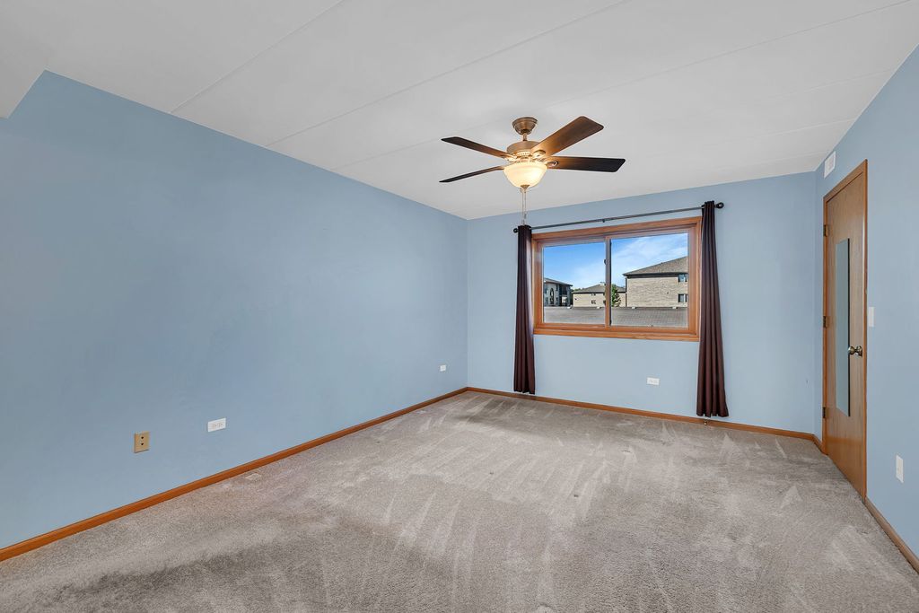 Welcome to this well maintained 2 Bedroom, 2 Bath Condo located on the second floor of an elevator building in a desirable 55+ Crestwood community. This sun bathed unit offers comfort, convenience, and plenty of updates throughout as well as a detached 1 car garage. Enjoy an open concept Living and Dining area, complete with a large built in cabinet/hutch that remains with the home perfect for displaying your favorite glassware or china. The eat in Kitchen also reveals space for casual dining & includes all appliances. Step out onto your private balcony where you can enjoy views of open green spaces including a soccer field. The attached storage closet is great for seasonal or extra items. Your spacious Primary Suite features a large walk-in closet and Ensuite Bath. The Second Bedroom is ideal for guests or as a home Office. You'll appreciate having an in unit Laundry with Washer & Dryer. Updates include: 2025: New Microwave; 2023: New Washer; 2021: New garage door opener; 2021/2020: New Carpeting; 2019: New A/C. Don't miss this opportunity to enjoy low-maintenance living with all the comforts of home in the serene setting of a vibrant 55+ community!