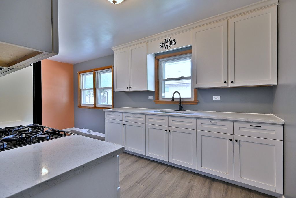 Welcome to this solid brick raised ranch featuring 3 bedrooms and 2 full bathrooms in the heart of Bensenville. The main level offers a bright living room, freshly refinished oak floors, a functional eat-in kitchen with quartz countertops, and comfortable bedrooms. The basement adds extra living space with a second full bath and a bar area, making it ideal for a family room, office, or play area. Outside, the property boasts a spacious lot with a private backyard, a large driveway with ample parking, and a detached garage for storage and convenience. Located near schools, parks, and O'Hare, this home delivers both comfort and accessibility.