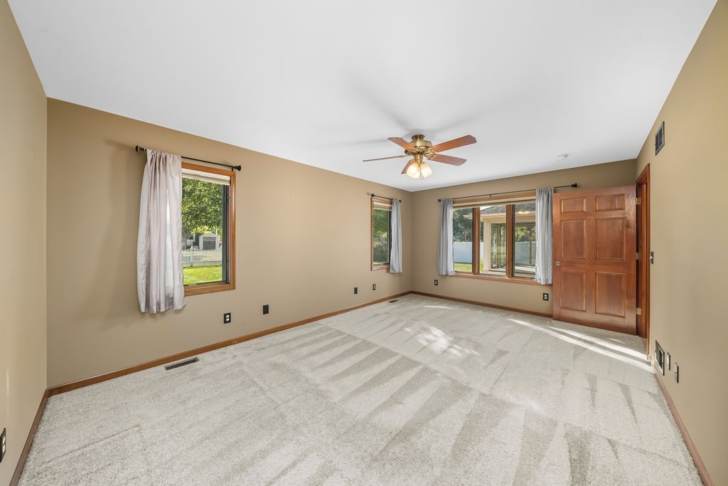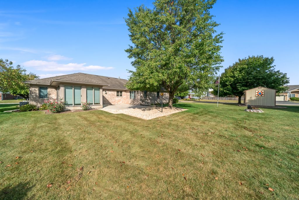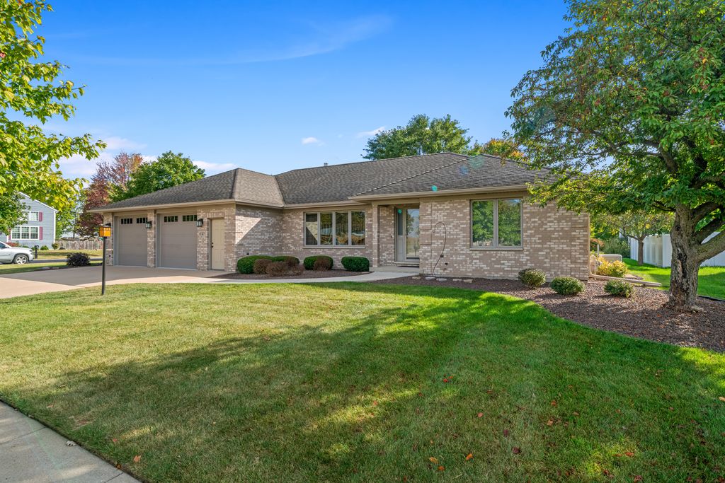 ALL BRICK RANCH LOADED WITH UPGRADES! This spacious all brick home is designed with comfort, function and long lasting quality in mind. Featuring a desirable split floor plan and a spacious great room, the layout offers both gathering space and privacy. The large eat in kitchen/dining room has a breakfast bar, lots of storage and opens to a fabulous sunroom with a patio area creating a courtyard feel so you have privacy while enjoying the large back yard. The master bedroom is a true retreat with a large walk in closet, a dressing room and a separate bathroom area with a curbless tile shower. The secondary bedrooms are very spacious with large closets and they separated with a large hall bath. The laundry has counter space, a sink and a wall oven to help out during your gatherings when you need just a little more oven space. ADA hallways, six panel doors, central vacuum (also stubbed into garage), electric fireplace and whole house generator are just some of the extra features offered. Let's talk about the HUGE 32X28 garage*Can you say man cave*Heated*Epoxy floors*Custom cabinetry*New doors and openers in 2023*Next up is the basement*Deep pour*Partially finished w usable carpeted area measuring 28X20*Full bath*Storage/workshop area measures 38X37 with expansive shelving and it's own furnace! Main furnace and a/c was replaced in 2023l*Back up Sump pump*50 gallon water heater*Rough in for a 2nd basement bath*So much potential to finish off! This exceptional home is conveniently located on a corner lot in the NW section of Hinckley, ideal for commuters. Homes like this do not come around often so call for your showing today!