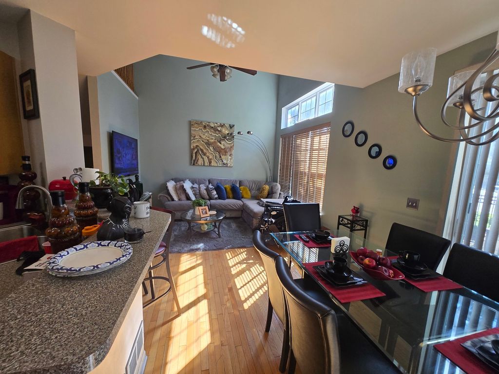 Welcome to this beautiful home featuring a bright, open floor plan. The dramatic two-story living room flows seamlessly into the modern kitchen, featuring a pantry, recessed lighting, and a ceramic tile floor. A sliding glass door opens to a concrete patio, perfect for outdoor enjoyment. Upstairs, a large loft area provides a flexible space for a home office or library. The spacious master bedroom includes a large walk-in closet and an en-suite bathroom with dual sinks, a separate shower, and a soaking tub.The finished lower level offers even more living space with a large family room. The seller is offering a $4000 credit for the buyer to purchase their own new kitchen appliances, washer, and dryer. This home is conveniently located close to Route 59, Fox Valley Mall, and I-88, with the Metra commuter train just minutes away.