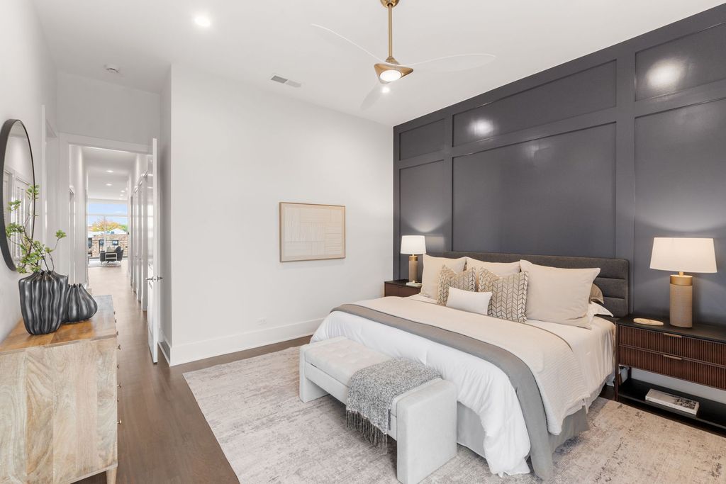 Discover the epitome of luxury in this beautifully renovated fourth-floor penthouse, nestled within the sought-after Blaine School District. An exquisite living space, this 3-bedroom, 2-bathroom condo is a testament to style and craftsmanship. As you enter, you're greeted by soaring 12' ceilings and gleaming hardwood floors that guide you through an open and airy layout. The living area boasts a custom fireplace adorned with elegant arched bookcases, and just beyond, an inviting outdoor space off the main living area, perfect for relaxation. The brand new kitchen, designed for the culinary enthusiast, features a suite of Thermador stainless steel appliances, a striking custom hood, and polished nickel finishes that elevate the space. Indulge in luxury in the primary suite, which presents a unique accent wall and an en suite bath highlighted by brushed gold Kohler fixtures and custom cabinetry. Step outside to your private balcony, perfect for enjoying peaceful mornings. The home also offers a private rooftop deck, complete with vast views of downtown and a convenient gas hook-up, ideal for entertaining. All outdoor spaces feature brand new, durable Trex decking, ensuring style and longevity. With two tandem parking spaces included and an in-unit washer and dryer, convenience is at your fingertips. Located just steps to Southport Corridor and Wrigley, this extraordinary penthouse combines urban sophistication with the comforts of a dream home. Embrace the lavish lifestyle you deserve in this exceptional residence.