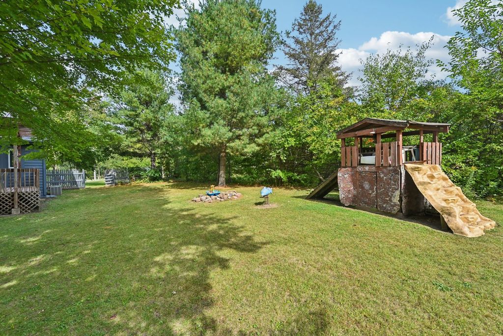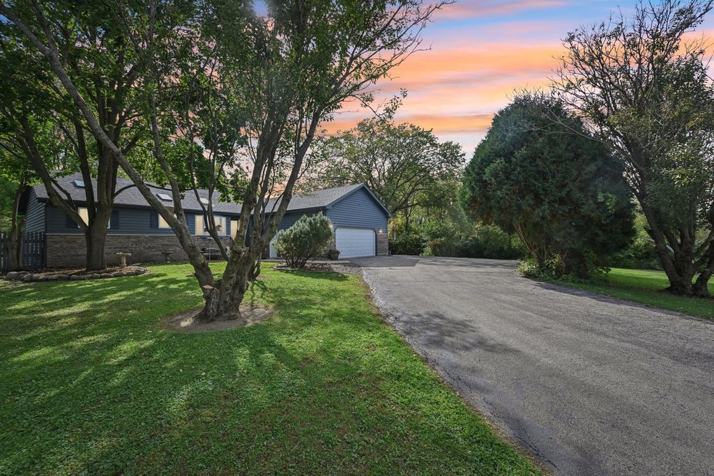 Beautiful Ranch Home on 1.45 Acres. Discover comfort, space, and natural beauty in this stunning 3-bedroom, 2.1-bath ranch home nestled on a 1.45-acre wooded lot. Step inside to a welcoming vaulted living room with fireplace, open to the kitchen and dining area, creating an ideal space for family gatherings and entertaining. The master suite offers a relaxing retreat with a separate tub and shower, while the sunroom provides peaceful views of the private backyard and access to the spacious deck-perfect for enjoying the outdoors. The partially finished basement expands your living space with a rec room, bar area, half bath, and a 4th bedroom or office. Additional highlights include first-floor laundry, new roof, and fresh paint inside and out. The heated 2-car garage and the beautiful wooded setting complete this move-in-ready home that combines charm, function, and privacy. Don't miss this rare opportunity-schedule your private showing today!