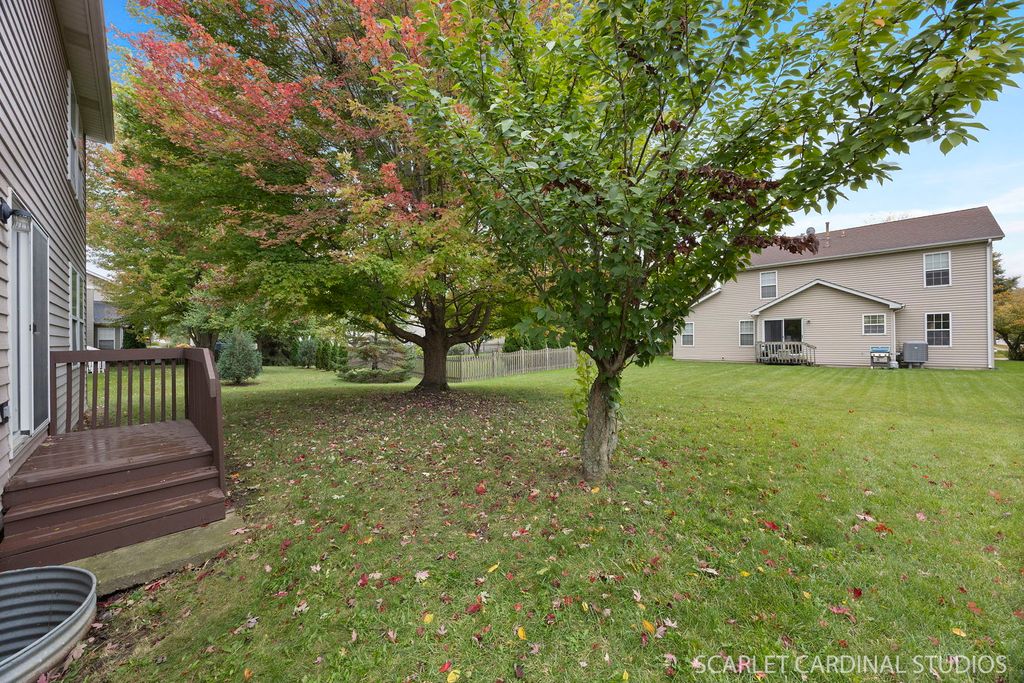 Beautifully updated 4-bedroom, 2.1-bath home situated on a spacious corner lot in a prime location. This home has been thoughtfully refreshed with newer flooring, neutral paint, white trim, and modern finishes throughout. The main level features a formal living room with a vaulted ceiling and an adjacent dining room accented by a stylish chandelier. The renovated kitchen offers white cabinetry, a tiled backsplash, quartz countertops, recessed lighting, and a pantry closet. The adjacent eating area is perfect for casual dining and includes sliding glass doors leading to the backyard. The open-concept layout flows seamlessly into the family room, creating an ideal space for entertaining. An updated powder room and convenient laundry room complete the main level. Upstairs, the generous primary suite includes a walk-in closet and an updated en suite bath. Three additional bedrooms with spacious closets and another full bath complete the second floor. The basement is ready for your finishing touches, while the crawl space provides ample storage. Outside, enjoy the large yard with mature trees offering plenty of space for all your outdoor activities. Located within the highly rated Steck Elementary, Fischer Middle School, and Waubonsie Valley High School boundaries. Conveniently close to Cheshire Lake Park, Oakhurst Forest Preserve, and numerous shopping and dining options along E New York Street and Eola Road. This is one you won't want to miss!