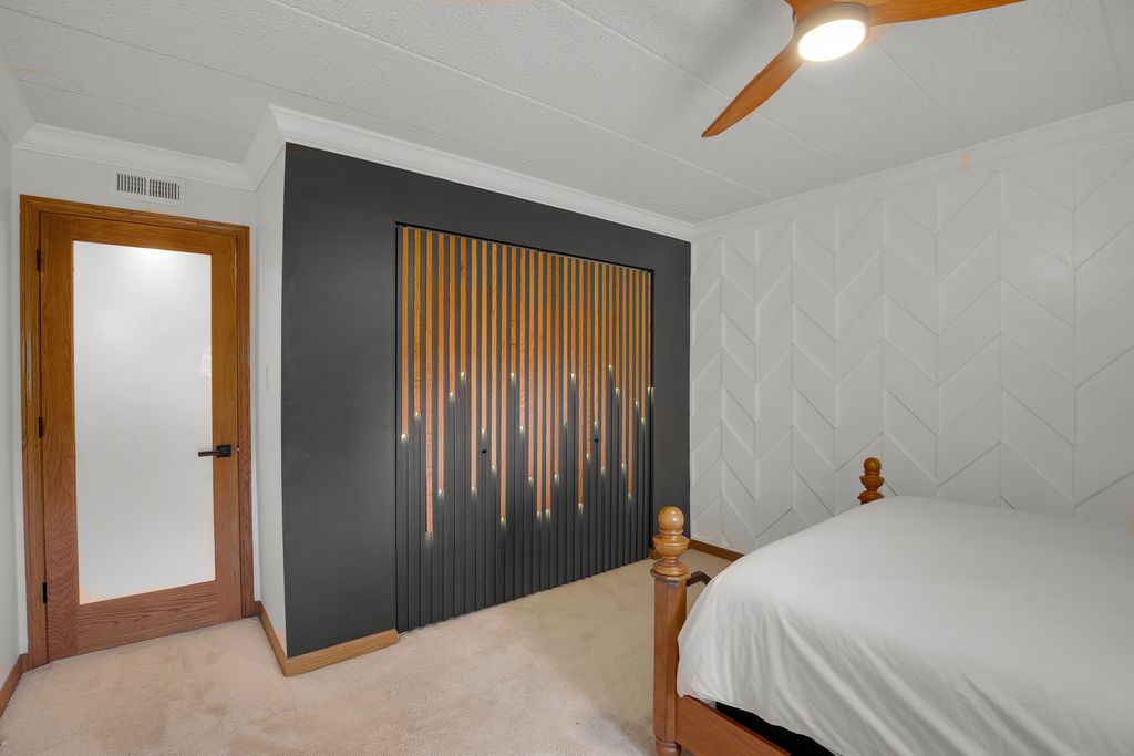 Welcome to your serene retreat tucked away in the woods! This charming 2-bedroom, 2-bath condo boasts approximately 1,200 sq. ft. of comfortable living space in the coveted Hidden Valley II community. **Features:** **Cozy Living Space:** Enjoy the warmth of a wood-burning fireplace, perfect for those chilly evenings. - **Modern Kitchen:** The kitchen is equipped with upgraded all stainless steel appliances, including an oversized exhaust hood and microwave drawer. Custom lighting, Corian countertops, and 36" upper cabinets provide both style and functionality. - **Convenient Amenities:** A new washer and dryer and fresh flooring in the laundry room make chores a breeze. - **Stylish Interiors:** Engineered hardwood flooring welcomes you in the entry, dining area, and kitchen, complemented by crown molding throughout. The dining room features elegant wainscoting and an accent wall. - **Custom Touches:** Enjoy custom glass doors and remote control ceiling fans in every room for added convenience. - **Safety Features:** The unit comes equipped with new smoke and carbon monoxide detectors with a ten-year battery backup, an in-wall safe, and a fire extinguisher located conveniently in the hall. - **Technology & Security:** Stay secure with an intercom security system for the building, an electronic keypad entry to your unit, and door switches installed on closets with 12-volt LED lighting. A whole house surge protector provides peace of mind. - **Outdoor Retreat:** Relax on your private balcony and enjoy the peaceful surroundings. - **Underground Parking:** Indoor heated parking with fire sprinkler suppression and additional storage in the basement garage area for added convenience. - **Community Amenities:** The Hidden Valley complex is managed by Alliance Property Management and includes waste disposal, hallway maintenance, lawn care, snow removal, and exterior repairs covered by the HOA. **Additional Information:** - A new roof will be replaced by the HOA, already paid for by the current owner and included in the sale. Don't miss your chance to own this beautifully updated condo in Hidden Valley II! Schedule your viewing today and experience the comfort and tranquility of your new home.
