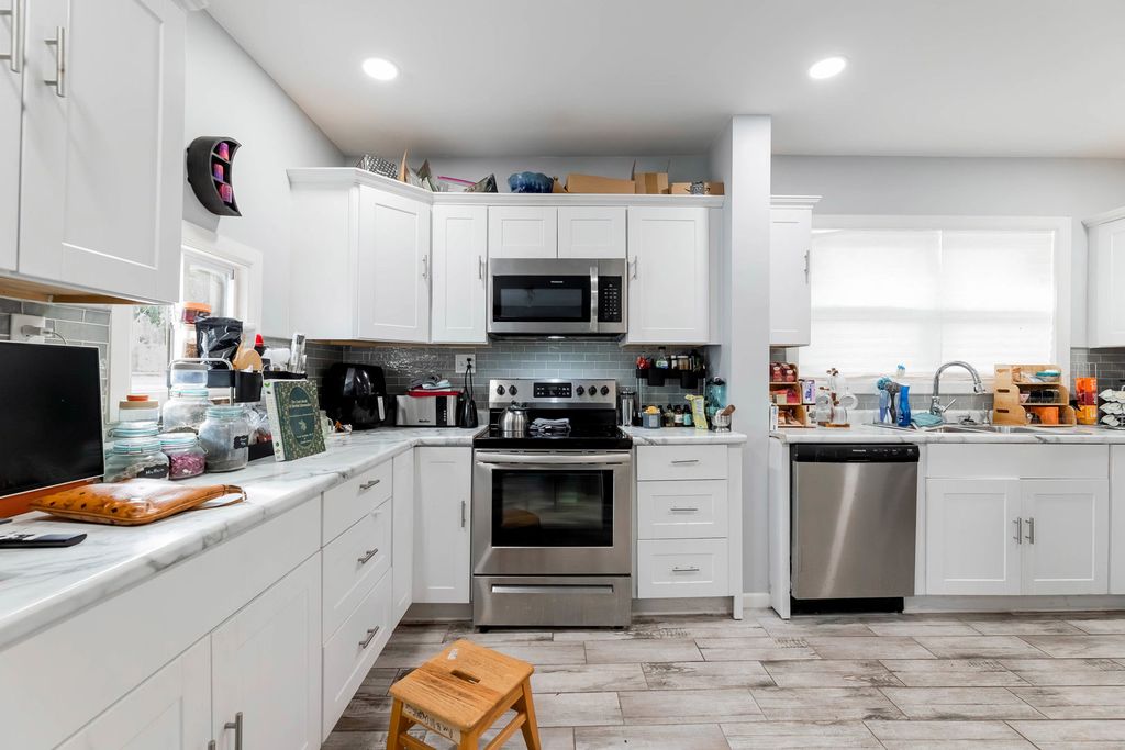 Welcome to this stunning 4-bedroom, 2-bathroom brick bungalow nestled on a quiet, tree-lined block in Washington Heights. Fully renovated in 2020, this home perfectly blends modern upgrades with timeless charm, highlighted by the preserved original hardwood floors in the living room. The open-concept kitchen and dining area feature marble countertops, stainless steel Frigidaire appliances, soft-close cabinetry, and sleek laminate flooring. Skylights throughout the first-floor common areas flood the home with natural light. Each bedroom offers brand-new plush carpeting and comfortably fits queen-sized furnishings. The fully finished basement, completed less than 6 months ago, is designed for entertaining and includes a second full bathroom with a luxurious whirlpool tub. Step outside to enjoy the beautiful backyard oasis with a spacious deck and a 2-car garage. Conveniently located across from a primary elementary school and near top-rated charter and magnet schools, this home is also close to CTA bus routes, shopping, and daily lifestyle necessities. Don't miss the opportunity to tour this beautifully updated home-your clients will love it!