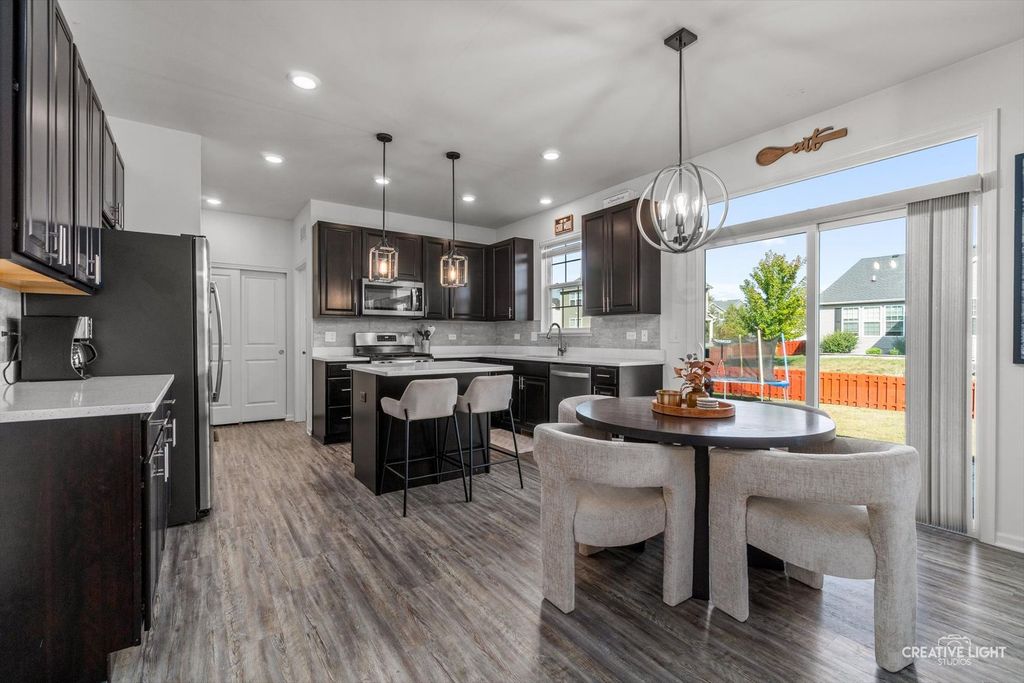 Discover this updated 3-bedroom, 2.5-bathroom home in the sought-after Huntington Chase subdivision. With fresh style, smart updates, and a prime location, this home is designed to impress. The main level showcases luxury vinyl flooring throughout and striking slat wood accent walls that add warmth and character. A first-floor office makes working from home easy and private. The kitchen has been fully updated with quartz countertops, stainless steel appliances, and plenty of space for both meal prep and entertaining. Upstairs, a spacious loft offers extra living space and can easily be converted into a fourth bedroom. The guest bedroom features a stylish dimensional wood accent wall, while the primary suite feels like a retreat with its tray ceiling, walk-in closet, and private bath. The primary bathroom includes a double vanity and a large subway tile walk-in shower, creating a fresh, modern feel. The unfinished basement is already framed, making it easy to add more living space. A 2-car garage provides convenience, while outside, a brick paver patio and hot tub make the backyard an ideal place to relax. Recent updates add peace of mind, including a brand-new roof that is only one month old. The home is located within walking distance of a park and is just minutes away from shopping, dining, and community events. Popular destinations like Raging Waves Waterpark, Stuart Sports Complex, and the Fox Valley YMCA are all nearby. Add in highly rated Yorkville schools, and this home offers a fantastic combination of comfort and convenience.