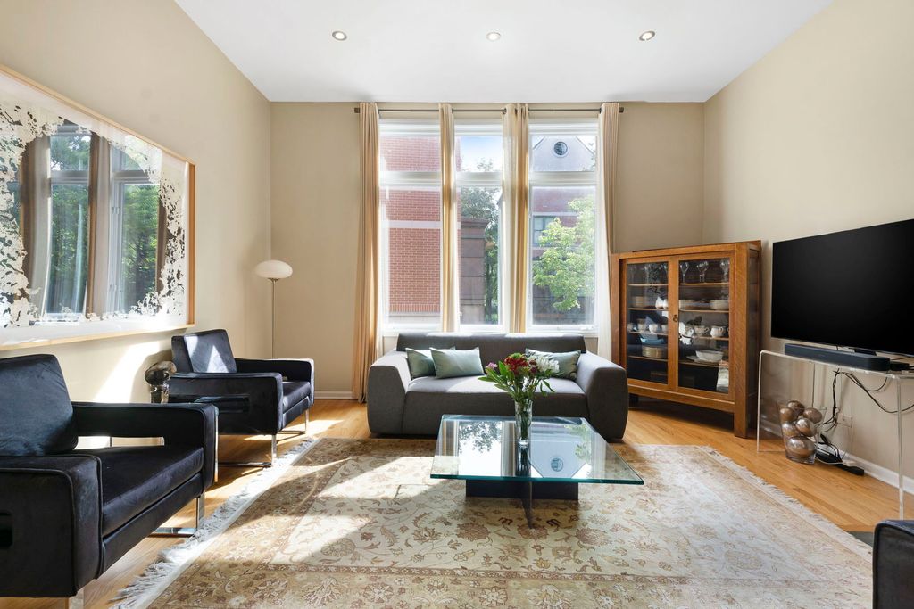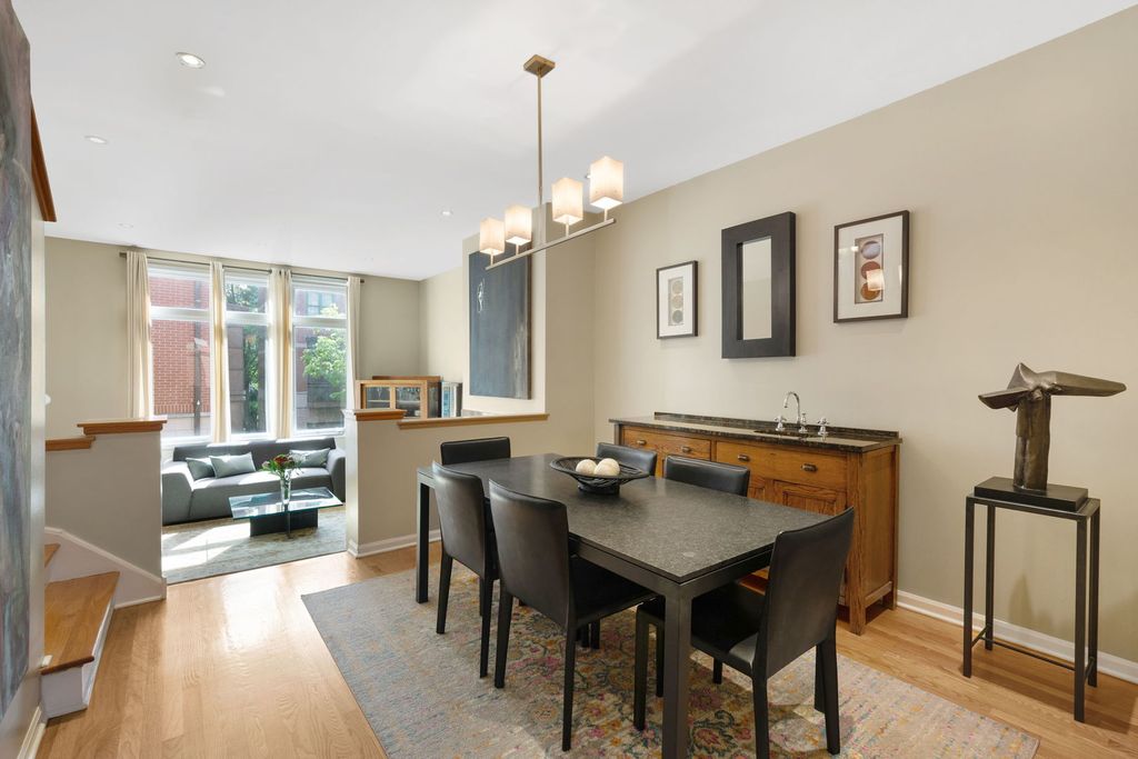 Desirable Park Row townhome featuring three bedrooms, two and half bathrooms, contemporary updates throughout and a prime South Loop location. Situated on a quiet tree lined street in a gated complex with a welcoming patio and foyer entry. First floor family room with is a versatile space could be used as home office. Spacious open concept living and dining area with gas fireplace, chic lighting fixtures, hardwood floors throughout, and filled with natural light from the large south facing windows. Updated kitchen offers sleek white cabinetry with plenty of storage space, eat-in island, granite countertops and subway tile backsplash. Powder room located on the main living level. Sprawling full floor primary suite with vaulted ceilings, hardwood floors, wall to wall closets, and a sitting area with fireplace. Updated primary bathroom features a contemporary dual sink vanity and glass enclosed rain shower. The second and third bedrooms are spacious with lots of natural light and ample closet space. Large guest bathroom with dual sink vanity, tub shower combo and linen closet. Side by side washer dryer conveniently located on the bedroom level. Attached oversized single car garage. Excellent South Loop location with many neighborhood parks and just minutes from larger attractions like Grant Park, Museum Campus, the Lakefront Trail, shops, restaurants, and nightlife with convenient access to the Loop, transit, and expressways.