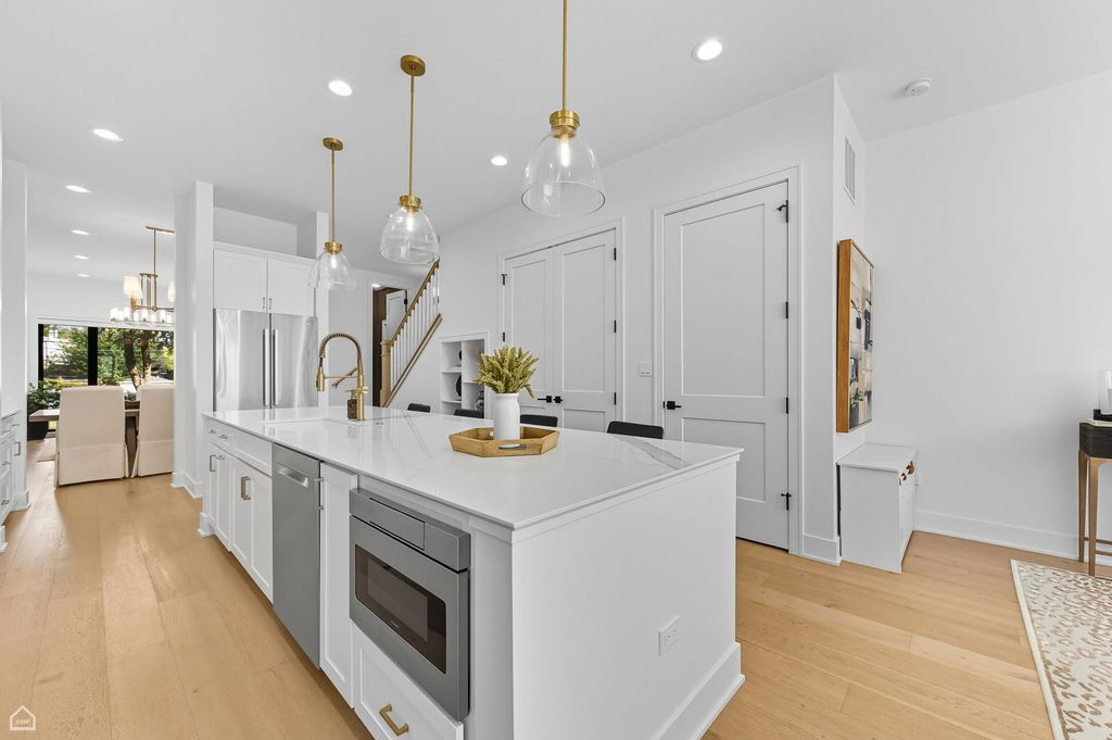 Introducing 2331 W Montana - feel like you are living in a magazine and a new standard of relaxed sophistication. Built in 2021 and maintained in impeccable condition, this five-bedroom, three-and-a-half-bath home feels like a California dream brought to life for the best house you can find in the city at this price. All in the hidden gem pocket of North East Bucktown. Not too familiar with the benefits of this location? All the pros of a residential tree lined street yet in extremely accessible location. Easiest access to 90/94 you can imagine without hearing the highway. Holstein Park and public pool right down Oakely. Incredible access to Elston corridor shops: Costco, Home Depot, Target. Enjoy your best life at Midtown Athletic Club. Super convenient access to Fullerton and Western to get to any part of the city and have access to all of the fun Bucktown and Logan restaurants without the noise of the EL, crazy traffic of six corners, and over paying a premium to be a few blocks west and being farther from Lincoln Park and the lake. Have fun in any season at Regal Movie Theaters or Logan Arcade. Or love your furry friends at the local Logan Dog Park. Home life will be impeccable in this timeless design. Featuring a brick exterior, black-framed windows, and light-filled interiors with soaring 10-foot ceilings. Wide-plank white oak flooring, and a seamless flow between living spaces. The open-concept main level includes a chef's kitchen anchored by an impressive 10-foot island, outfitted with porcelain countertops (beautiful and incredibly durable), Bosch appliances, a custom-built pantry, and abundant storage-including a clever under-stair compartment that keeps family spaces clutter-free. Thoughtful upgrades throughout the home include a stair carpet runner on all levels, custom professional closet systems, and designer wallpaper in the powder room and lower-level bath. Every bedroom is wired for Ethernet, making work-from-home effortless. Outdoor living shines here: a fully built-out garage roof deck with skyline views features a heavy-duty pergola, built-in grill and outdoor kitchen, wraparound bench seating with custom cushions, and a gas fire pit. A grade-level brick paver patio and private, cedar-fenced yard offer additional gathering space. The home was engineered for an optional rooftop deck should future owners wish to add one. Smart home features include hardwired ADT security and camera systems (operational even during outages), glass break sensors, and a Nest thermostat. Auto roller shades-blackout and layered where needed-enhance privacy and comfort throughout. The lower level offers flexible living with radiant-ready flooring (pre-piped and ready for boiler installation), a huge storage room under the mudroom, and natural light throughout. The upper level includes a coveted bedroom-level laundry with extra storage and plumbing for a second laundry in the basement hall if desired. The builder, who also owns the neighboring property, is often available for questions-underscoring the attention to detail and integrity behind this home. 2331 Montana offers a quiet, neighborly feel despite incredible city accessibility. The street sees little through traffic, and the lot across the street is privately owned and well-maintained. Come see the best of urban living-refined design, smart functionality, and easygoing elegance-all ready for you to enjoy to make your home today!