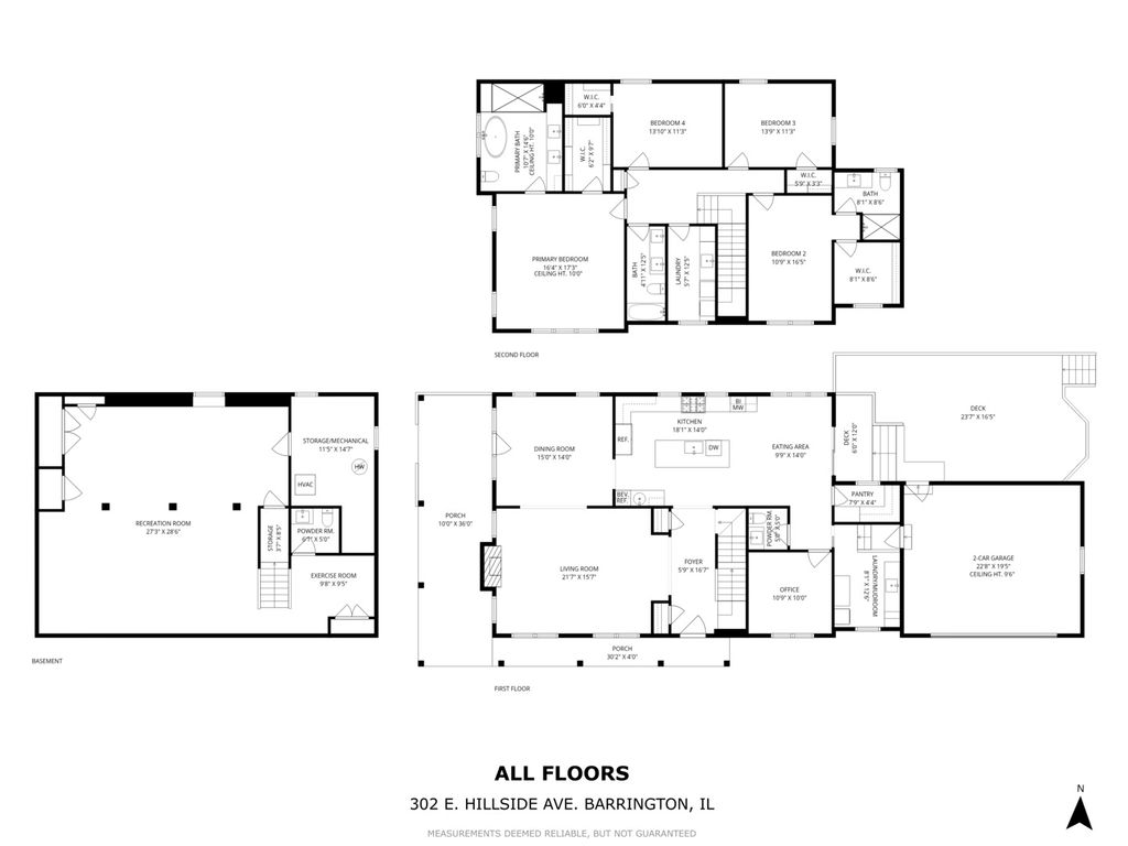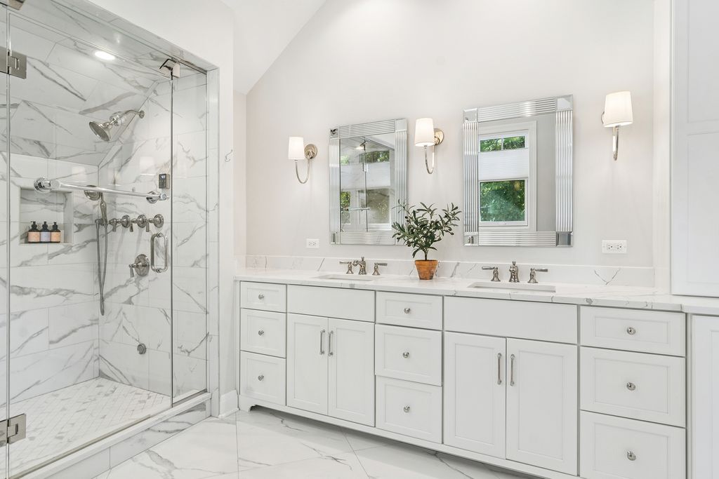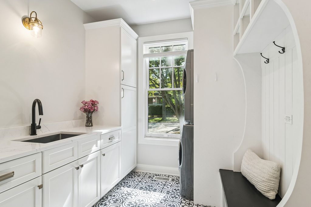 Step into the delightful charm of 302 E Hillside Avenue, where sophistication meets fun across more than 4,000 square feet of beautifully crafted living space. With 9-foot ceilings on both the first and second floors, this home invites you into a world of elevated style and comfort. Picture mornings on the inviting wraparound porch, sipping coffee as the village stirs to life. The heart of the home is the kitchen, a culinary playground featuring sleek quartz countertops, custom white cabinetry, a spacious Sub-Zero fridge, and a top-of-the-line Wolf range. Let gatherings flow effortlessly into the chic wet bar with its handy wine cooler, perfect for entertaining. From here, the dining room and family room beckon, drenched in bright sunlight, creating a warm and inviting atmosphere for family and friends alike. Retreat to the primary suite where vaulted ceilings and a sumptuous steam shower create a spa-like sanctuary, complete with a soaking tub for ultimate relaxation. And, with first and second floor washer-dryer sets, keeping things fresh is a breeze. Work from home in the stylish first-floor office, and enjoy the smartly designed mudroom that caters to modern living. The finished lower level offers endless possibilities for leisure and play, with a convenient powder room for guests. The outdoor space is a perfect mix of charm and practicality, providing a private oasis for entertaining or just soaking up the tranquility of your surroundings. Plus, the yard and property are designed to be easy to maintain, offering you more time to enjoy the beauty and serenity of your environment. Discover the perfect blend of refined elegance and playful charm in your new luxury retreat! Nestled in a prime corner of Barrington Village, this home boasts a location that's hard to beat. You'll enjoy easy strolls to top-rated Barrington 220 schools, charming shops, delightful restaurants, and the Metra train station-ideal for commuters and explorers alike!