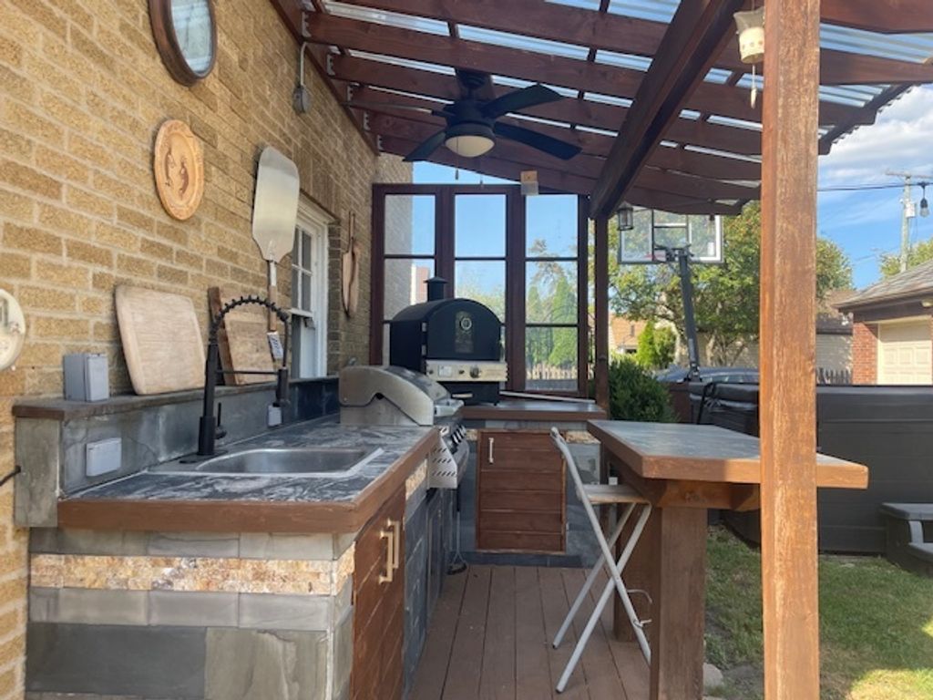 Beautiful brick and stone exterior and an open front porch welcome you to this handsome Colonial-style with a large lot situated on a quiet street amidst many stately homes in Northwest Oak Park. High-end gourmet kitchen featuring Miele/Bosch/Sub Zero appliances and so many amenities to love like a 48 inch fridge, induction cooktop with Zephyr hood, steam oven + separate micro/oven combo, built-in coffee/espresso station, under-counter icemaker, bar sink, thoughtful cabinet/storage design and more! The attractive quartz breakfast bar has seating for 4 and is open to the large dining room. Off the kitchen, in the hall, is a pet feeding station with water faucet. The main floor also includes a generous sized living room with a woodburning fireplace, adjacent library/office and half bath. The nicely finished basement with a wet bar and decorative fireplace can accommodate so many uses - family room, office, recreation room and it has been used as a recording studio complete with control booth and soundproofed area. Five generously sized bedrooms, including the primary suite are on the second floor. Off the primary suite, is a delightful light-filled solarium that has great space for quiet reflection with its own sink and shelves for your plants. The third floor has a large bonus room, office and bath. Both third floor rooms have closets and could easily serve as separate living quarters. Another extra is a red light sauna room! Outside, you'll find an outdoor kitchen with a sink, pizza oven, natural gas grill, seating island and a handsome brick paver patio. A remote control electric gate lets you in from the rear of the property to your two car heated, attached garage and additional parking. Truly too many unique features to mention! You just have to see it! Parks, schools, shopping and restaurants are nearby. Note: Hot Tub excluded