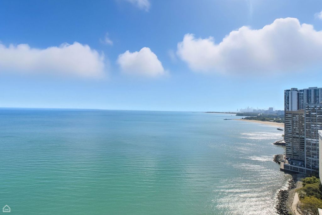This beautifully remodeled true 1-bedroom condo at Shoreline Tower is a must-see! Pristine and move-in ready, with rich dark engineered hardwood flooring and new lighting fixtures throughout. The spacious, opened chef's kitchen has been fully reimagined with pristine white and gray cabinetry, stylish subway tile, newer stainless steel appliances (2024), quartz and butcher-block counters and breakfast bar. Enjoy lake views from the all windows! Smart floor plan w/ plenty of storage, flexible living and dining space, and a sizable bedroom that can easily accommodate a king bed and office furniture. Monthly assessments included internet, cable, heat/AC, water...everything but electric. Extra storage included. Shoreline Towers is a full-amenity building, featuring an incredible sundeck w/ panoramic lake and skyline views, well-stocked fitness center, large common lounge/community room, laundry facility, 24 hour door staff and more. Strong reserves at $4 mil+. This is lakeside living at its best: enjoy quick access to the beach, bike and walking trails, Whole Foods, Metropolis Coffee and plenty of amazing restaurants and entertainment venues throughout Edgewater, Andersonville and Rogers Park. Convenient to the Red Line and express bus downtown. Just a short walk to Loyola University.
