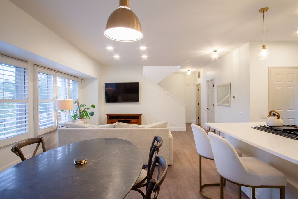 This townhome has been thoughtfully updated so you can move right in and enjoy. Fresh paint, high-end vinyl flooring throughout, and wood flooring on the stairs set the tone for a modern, low-maintenance space. The renovated kitchen ties it all together with stainless steel appliances, a breakfast bar, and a roomy walk-in pantry. The open layout makes everyday living easy and gatherings more fun, while the loft upstairs adds a flexible spot for a home office, playroom, or reading nook. Just off the kitchen, the balcony is perfect for grilling or enjoying your morning coffee. Upstairs, the primary bedroom feels bright and welcoming with its vaulted ceiling, and both bathrooms have been refreshed with modern finishes. A newer Samsung washer and dryer (2017), along with a 2022 water heater, add peace of mind, and the oversized two-car garage offers plenty of storage. The location is a standout-just 4 minutes from the future Chicago Bears Stadium, with quick access to major highways, 2.5 miles to the Metra, and minutes from Woodfield Mall for shopping, dining, and more. A home that feels comfortable, convenient, and ready for what's next.