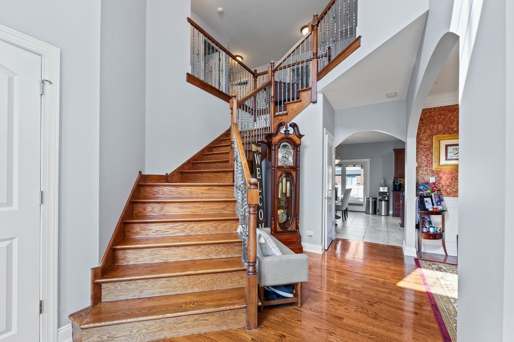 Wow-elegance, refinement, and sophistication are just the beginning! Welcome to this spectacular grand estate nestled in the prestigious Churchill Downs subdivision of Country Club Hills. Boasting over 5,300 square feet of luxurious living space, this stunning 5-bedroom, 4.5 bathroom home offers everything you've been dreaming of-plus more. From the moment you arrive, you're greeted by impeccable curb appeal, manicured lawns, and lush landscaping maintained by a full in-ground sprinkler system. Step into the grand foyer and prepare to be impressed by the stately curved staircase and soaring ceilings. The formal living and dining rooms set the tone for elegant gatherings. As you continue through the home, you'll enter a light-filled, expansive great room with an open-concept design that's perfect for entertaining. The heart of the home is the showstopping gourmet kitchen-complete with rich cabinetry, gleaming granite countertops, a massive oversized double-door refrigerator, an eye-catching vented hood, convenient warming drawer, and a top-of-the-line cooktop sure to delight any chef. The adjoining family room and dining area overlook a backyard paradise featuring a fully-equipped outdoor kitchen-an incredible $45,000 upgrade-designed for unforgettable parties or intimate family moments. Also on the main level is a versatile bedroom/exercise room, a full bathroom with a walk-in shower, and access to the spacious 3-car attached garage, which is finished with polyaspartic flooring and an EV charging station. Upstairs, you'll find four generously sized bedrooms, including an enormous primary suite that offers a private retreat complete with a spa-inspired ensuite bathroom featuring dual vanities, a soaking tub, and a separate walk-in shower. The second floor also includes a full laundry room for added convenience. And then there's the basement-an entertainer's dream. Professionally finished with over $80K invested, this massive space features a home theater, room for a pool table and gaming area, and a fully customized bar that will be the center of countless celebrations. Additional highlights include a whole-house generator, ensuring peace of mind year-round. Meticulously maintained and thoughtfully upgraded throughout, this home is move-in ready just in time for the holidays. Don't miss your chance to own one of the most impressive homes in Country Club Hills-welcome to your dream home!