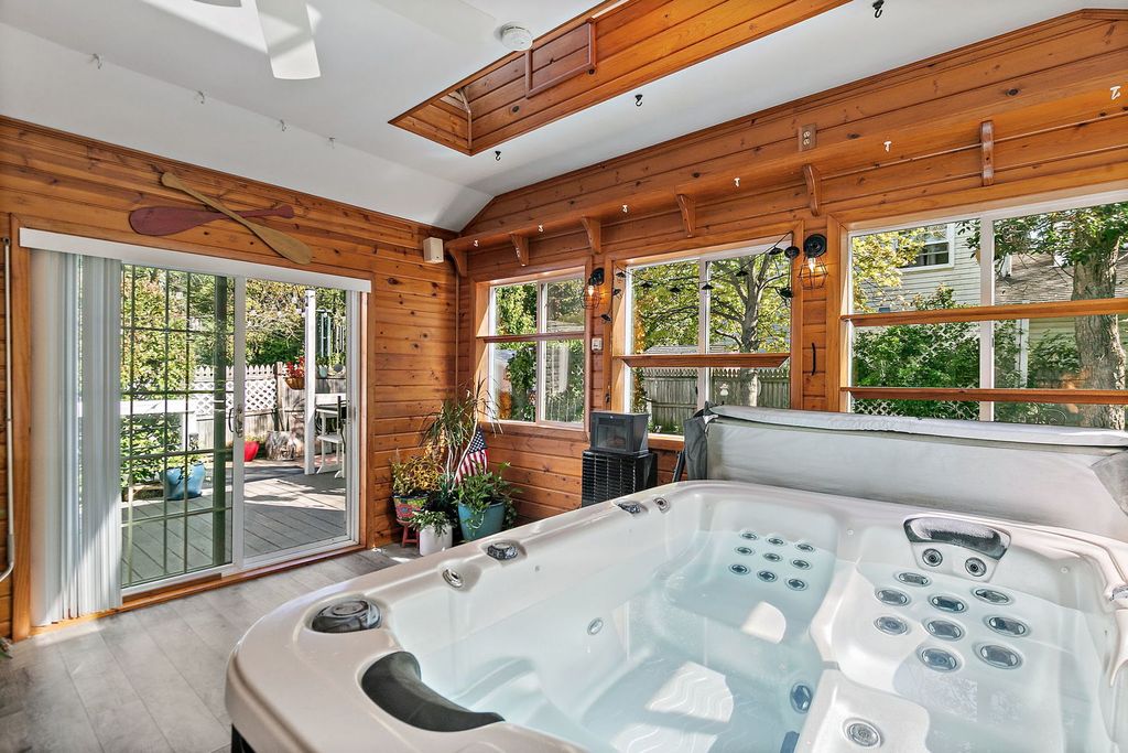 This impeccably maintained ranch offers true single level living in a convenient Aurora location. Inside, you'll find an open and airy floor plan with luxury vinyl plank flooring throughout. The bright kitchen with freshly painted cabinets and line of sight access to your dining room for easy entertaining. The comfortable living spaces are designed for ease and efficiency. The heated four season room with hot tub and skylights is a true highlight, providing year round enjoyment, while overlooking the private backyard. Step outside to relax on either the front or rear decks enjoying your fenced yard featuring mature trees and gorgeous flowers creating the ultimate private oasis. The attached garage is heated and insulated for those cold winters. Most recent upgrades include new roof, siding, gutters, and windows and solar panels (2023), hot water heater (2024), giving you peace of mind for years to come. This home also feeds into sought after district 204 schools. Energy efficient and thoughtfully cared for, this move in ready home is the perfect balance of comfort and easy living. Conveniently located near shopping, restaurants and quick access to I-88, this 2 bedroom ranch isn't too big or too small, it's just right!