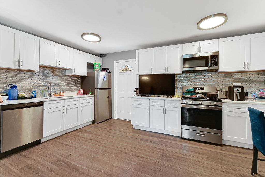 Welcome home to this stately and spacious split-level residence, perfectly situated on a quaint tree-lined street in Glenwood. The upper level showcases beautifully updated hardwood floors, 5 generous bedrooms, 2.5 bathrooms, and a convenient laundry room. The modern kitchen combines style and function with white cabinetry, quartz countertops, a striking mosaic backsplash, and stainless-steel appliances. A detached two-car garage adds both convenience and value, completing the picture of this move-in-ready home. Don't miss your chance to own one of the loveliest properties Glenwood has to offer!