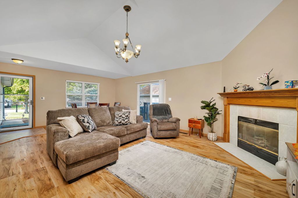 Welcome to this beautifully maintained ranch home featuring two spacious bedrooms and an inviting open floor plan. The master bedroom offers double closets, tray ceilings, and a shared ensuite with an updated vanity and walk-in tile shower. The living room includes a cozy fireplace, while the separate dining area provides access to the back deck-perfect for relaxing or entertaining. The kitchen boasts ample cabinets, generous counter space and granite countertops. Additional highlights include main-level laundry, fresh paint throughout, new Andersen screen door and new ceiling fans in the bedrooms. Full basement is just waiting for your finishing touches and includes an additional half bath. Schedule your showing today!