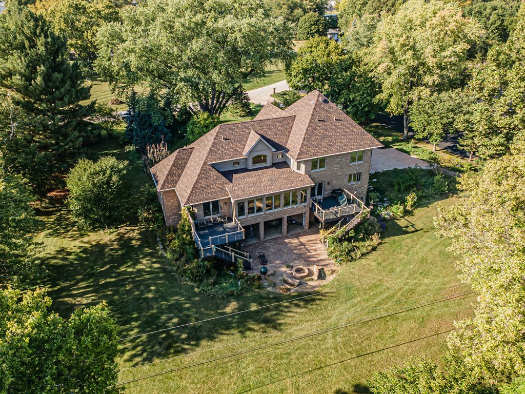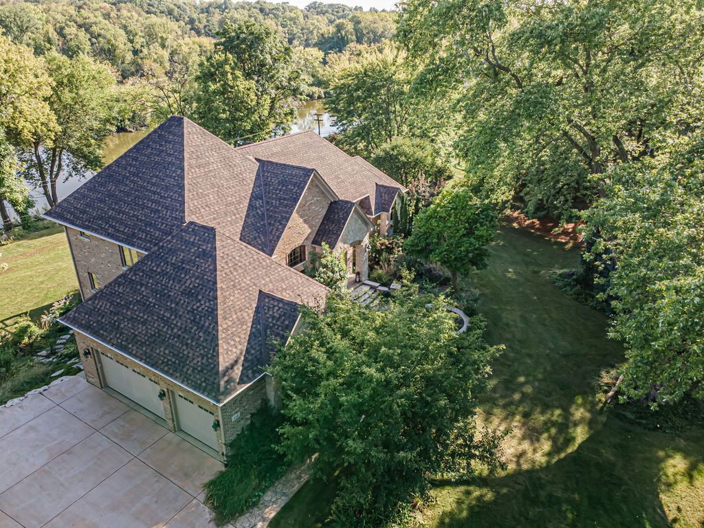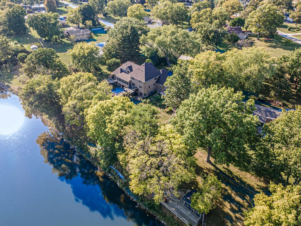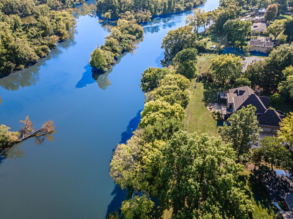 Majestic 244' Riverfront home in the highly desired, quiet Riverview Heights. This custom-built stone and brick 1.5-story features a main floor primary suite and showcases river living across three levels. The great room and dining room offer soaring ceilings with a dramatic floor-to-ceiling fireplace. The primary suite includes a tray and barrel ceiling with oak crown molding, double walk-in shower, whirlpool tub, walk-in closets, and private deck access with hot tub. Two additional ensuite bedrooms provide comfort for family or guests. The main kitchen is designed for a chef, featuring high-end appliances, double ovens, island cooktop, custom cherry cabinetry with pull-outs, granite counters with breakfast bar, and a custom stone backsplash. A lower-level second kitchen, impressive wet bar with lighted cabinetry, and ADA-style bath with roll-in shower add convenience and versatility. The walkout lower level also includes a rec room suited for theater or fitness, padded flooring, a classic wine cellar/safe room, and full in-floor hot water heating. Fine details throughout include oak and cherry finishes on the main level, hickory in the lower level, and travertine flooring. Outdoor living is highlighted by multiple decks, a stamped concrete patio, serene riverfront patio with pond, and a custom gas fire pit. The oversized three-car side-entry garage offers heated floors with drain, hot and cold water, 12' ceilings, and a gas line for an additional furnace. This home is equipped with 400-amp electrical service with generator panel, two forced-air HVAC systems with humidifiers and micro filters, and hot water systems serving both garage and basement. Additional features include a laundry chute, abundant closets, and multiple storage rooms, along with a large matching storage shed. A truly one-of-a-kind riverfront retreat blending luxury, comfort, and timeless craftsmanship - New Roof and Furnace - 2024