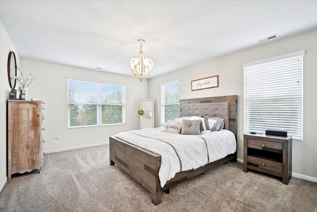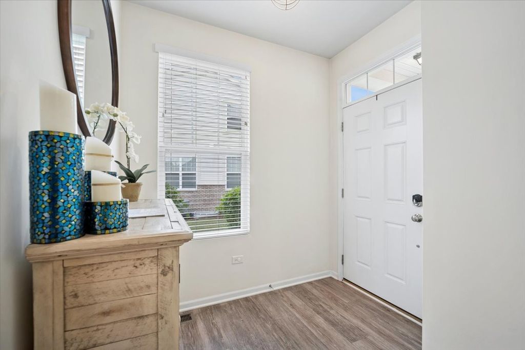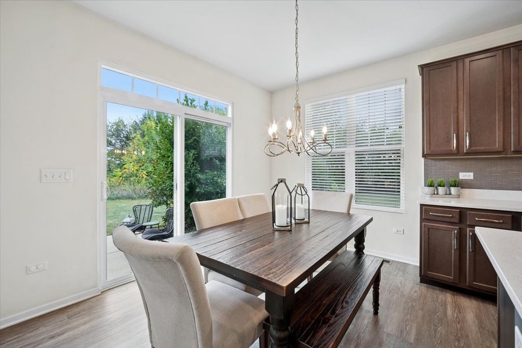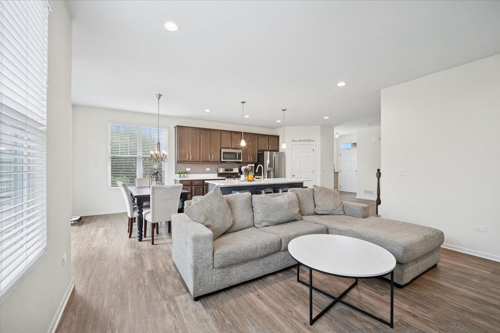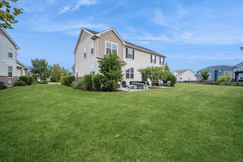 Welcome to your dream home at 26543 West Countryside Lane, a beacon of modern sophistication and peaceful living in the charming Chatham Square of North Plainfield in Kendall County. Built in 2020, this exquisite two-story end unit townhome on a cul-de-sac is a testament to contemporary design and comfort, situated within the top-rated Oswego 308 School District. From the moment you arrive, the nearby pond greets you with its tranquil waters. The absence of backdoor neighbors promises a private oasis in your own backyard, an ideal retreat for unwinding and savoring life's simple pleasures. As you enter, the open-concept living area welcomes you with a warm embrace, its abundant natural light accentuating the spaciousness and inviting atmosphere. The living room, a perfect blend of elegance and coziness, seamlessly transitions into the dining area, setting the stage for unforgettable moments and intimate meals with loved ones. At the heart of this home, the kitchen stands as a modern marvel, with sparkling Quartz countertops illuminated by chic lighting fixtures. The ample cabinetry, pantry and cutting-edge appliances await to facilitate your culinary adventures, making every meal preparation an experience to cherish. Step outside to the secluded patio, where nature's symphony accompanies your outdoor activities. The rustling leaves and gentle breezes set the scene for joyful summer barbecues or tranquil afternoons immersed in your favorite book. Now ascend the staircase to the second floor, where the master suite offers a haven of tranquility. The expansive room, complete with a luxurious en-suite bathroom and a walk-in closet, provides a private escape designed for ultimate relaxation and organization. Two additional bedrooms, both spacious and adaptable, offer endless possibilities to fit your lifestyle needs, be it additional sleeping quarters, a guest room, or a home office. The full, unfinished basement is a canvas of potential. Here, you can craft a space that truly reflects your desires, whether it's a lively playroom, an immersive entertainment center, or a personal gym. The neighborhood features peaceful walking trails, nice sidewalks and a playground at Willowgate Park. The attached 2-car garage adds to the convenience, offering not just storage solutions but a warm welcome home each day. 26543 West Countryside Lane is more than a residence; it's a sanctuary where every detail enhances a lifestyle of sophistication and serenity. Seize the opportunity to make this your new home and live the life you've always dreamed of.