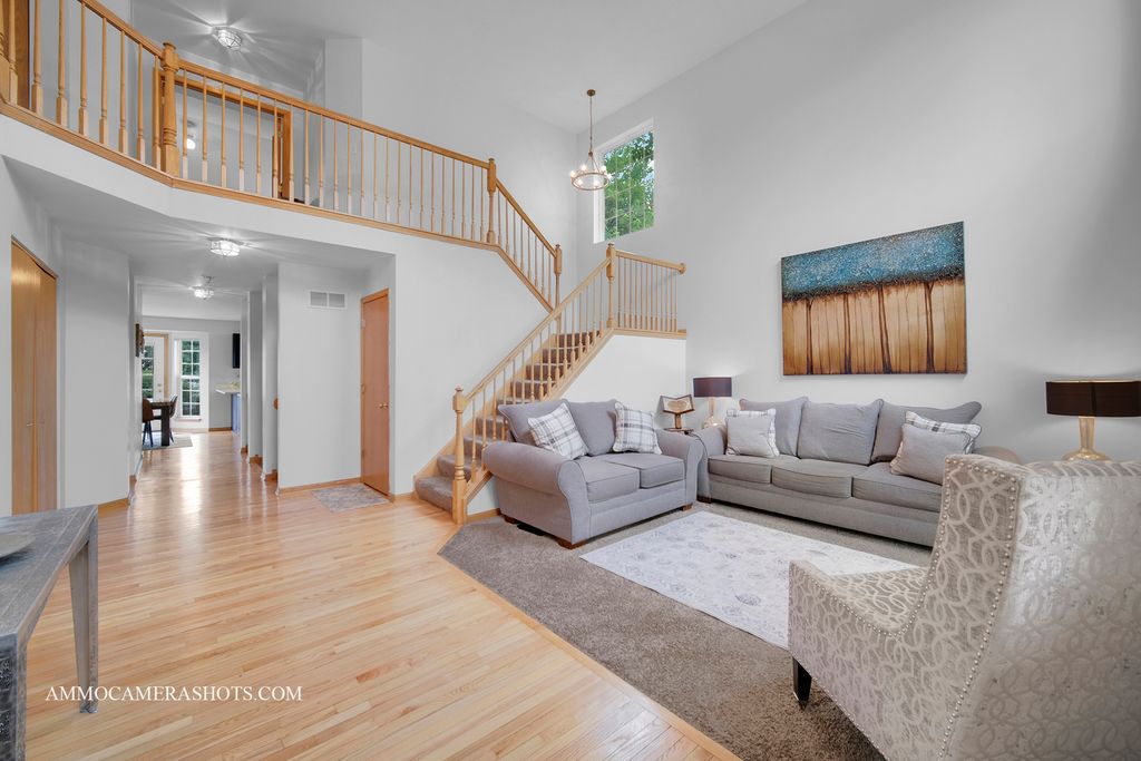 New HVAC system 9/2025, new radon mitigation system 9/2025!! This beautifully maintained 2-story home offers an open floor plan with a vaulted ceiling in the living room, creating a bright and airy atmosphere. The main level features a versatile 1st-floor bedroom or den with an adjacent FULL bath, ideal for guests or a home office. Upstairs, you'll find a total of 4 bedrooms plus a spacious loft, providing ample room for family, work, and recreation. Enjoy hardwood flooring in the kitchen, a cozy family room with a fireplace, and a huge unfinished basement with rough-in plumbing for an additional bath - ready for your personal touch. Located on a safe cul-de-sac, this home is freshly painted and move-in ready. Recent Updates & Upgrades Kitchen: New granite countertops, refinished cabinets, new dishwasher (2024) Interior: Fresh paint throughout (May 2024), updated lighting in kitchen, family room, and foyer Bathrooms: Main floor bath fully remodeled with new vanity, sink, and tile Systems & Comfort: New central air conditioning (March 2023), new smart thermostat Exterior & Structural: New roof (2018), new landscaping & mulch (May 2025) Additional Features: 1-step epoxy garage floor, hardwood floors refinished (May 2025), ducts deep cleaned (May 2025) With its combination of size, location, and extensive updates, this home offers outstanding value in the Wesglen neighborhood. Sellers are offering $3000 in closing credit for carpet. New HVAC system 9/2025, new radon mitigation system 9/2025. Hardwood floors finished 6/2025