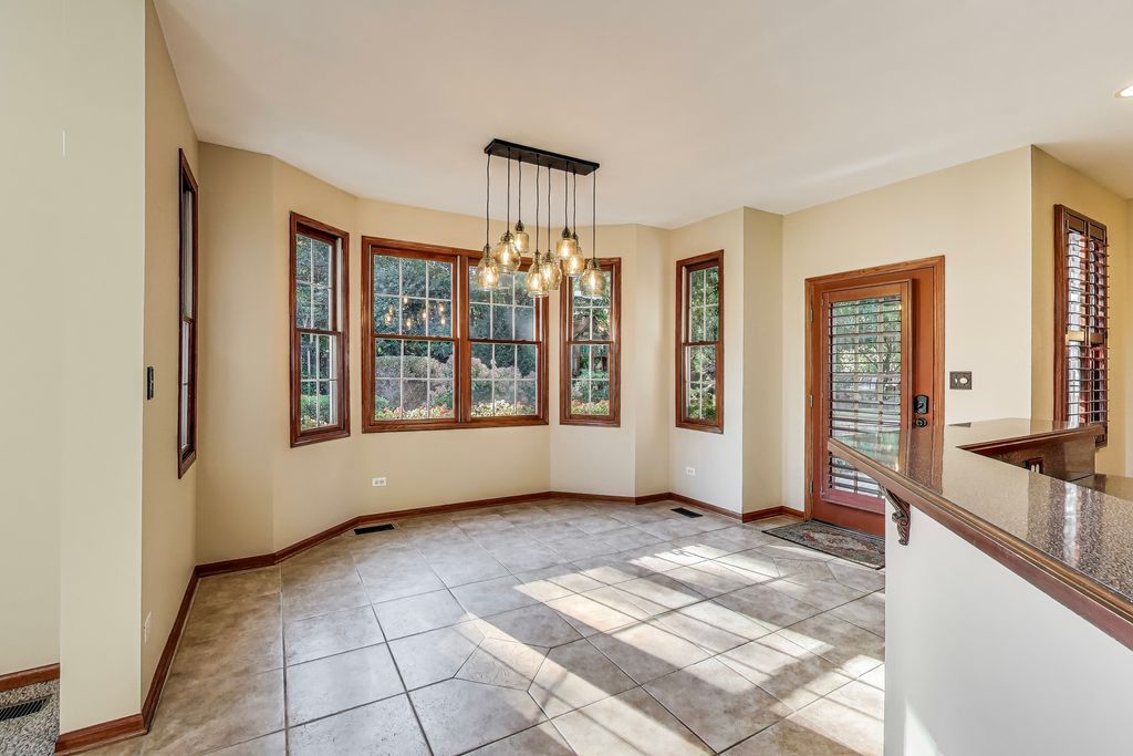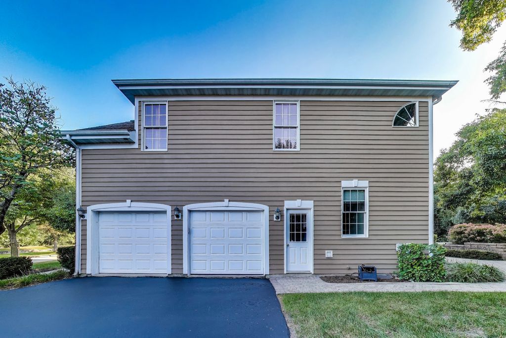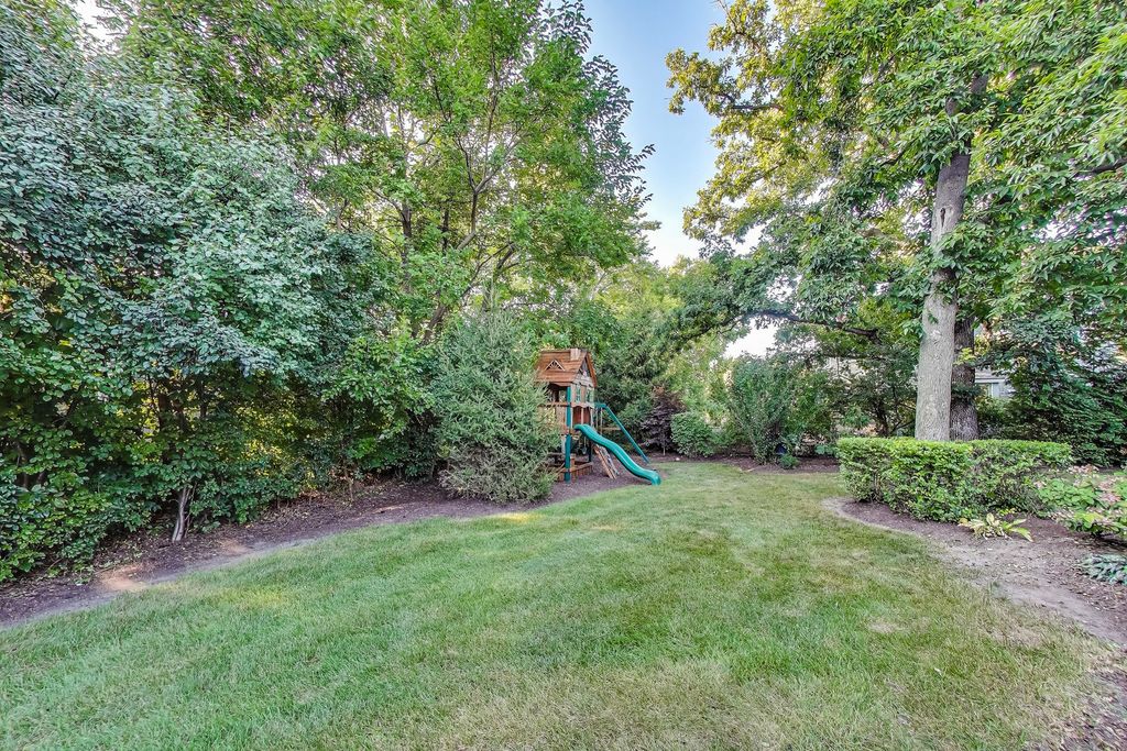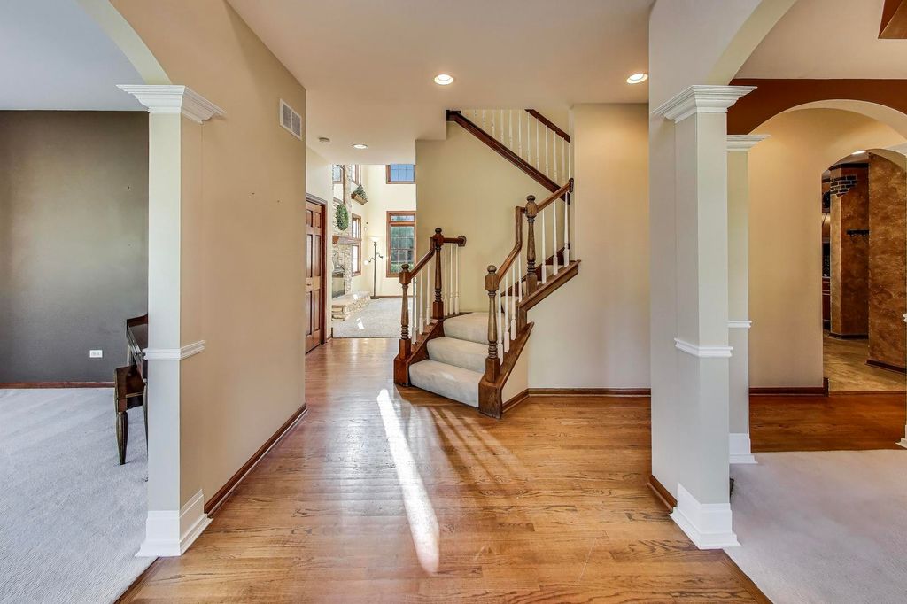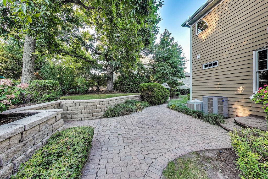 Step into timeless elegance with this stately 5 bedroom, 3.1 bath home. Featuring a total sq ft of 4,428. Hardwood floors greet you as you enter the grand 2 story Foyer. The Living Room showcases a distinctive turret style bay window a charming architectural showpiece that carries all the way to the 2nd floor bedroom. Inside, you'll find a kitchen filled with an abundant space for gathering. Tons of cabinets. An island countertop featuring a metal Pot hanging bracket pendant light. GE Cafe line Black Stainless steel Refrigerator, Stove, Microwave, conventional oven (2020). Spacious breakfast area room overlooking the backyard, Family Room and Kitchen. A showstopper 2 story Family room with dramatic stone hearth fireplace. Solid 6 panel doors throughout the home. The dual staircase makes access to the 2nd floor a breeze! Spacious Master Bedroom featuring a tray ceiling and den area with 2 walk in closets. Newly renovated Master Bedroom bathroom with new floors, shower, paint, and light fixtures (2025) All 4 bedrooms on the second floor boast spacious closet areas and tons of privacy. 2nd floor furnace (2025) 2nd floor AC (2024). The finished basement transports you to a Northwoods-style retreat. This expansive level features a full bar, additional bedroom, and full bath-perfect for hosting guests-along with wide-open recreation spaces designed for game nights, movie marathons, or simply cozy evenings by the fireplace. Step outside to a private, professionally landscaped oasis framed by mature trees. Two separate brick paver patios offer versatile outdoor living, whether you're enjoying quiet mornings with coffee, evenings around the firepit, or afternoons watching the sunset. This is the ideal retreat for both quiet evenings and lively get-togethers. The brick and stone exterior give the home so much character. Practicality meets charm with a side-load 2-car garage, recently asphalted driveway enhancing both function and curb appeal. Laundry room features a new sink (2025) Washer & Dryer (2020). Battery back up system in the basement. Hot water heater (2020). In ground Sprinkler system around the entire home. This remarkable home delivers the perfect balance of elegance, comfort, and thoughtful design-ready to be the backdrop for years of memories. Piano, Electronic dog fence & Swing set are included with the home.