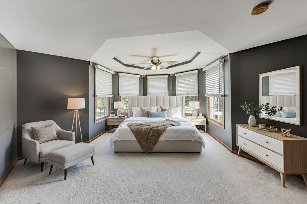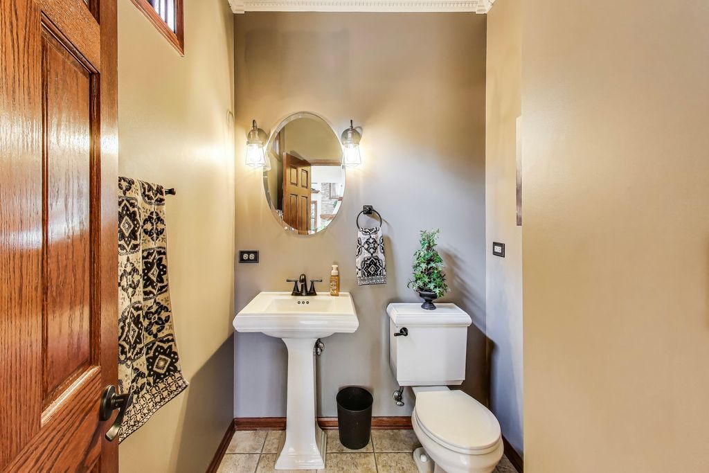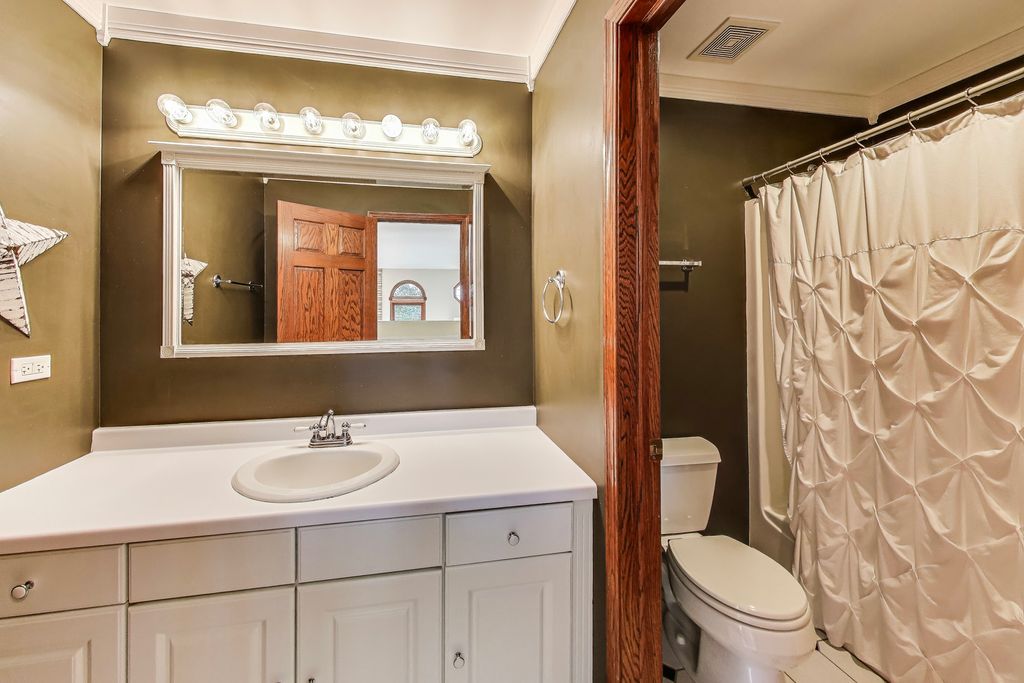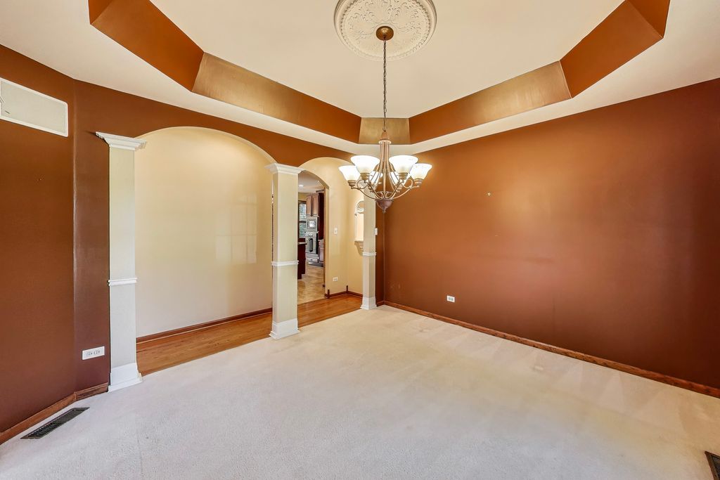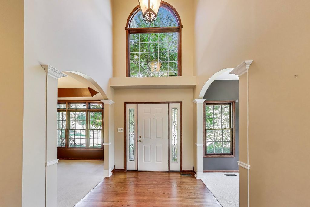 Step into timeless elegance with this stately 5 bedroom, 3.1 bath home. Featuring a total sq ft of 4,428. Hardwood floors greet you as you enter the grand 2 story Foyer. The Living Room showcases a distinctive turret style bay window a charming architectural showpiece that carries all the way to the 2nd floor bedroom. Inside, you'll find a kitchen filled with an abundant space for gathering. Tons of cabinets. An island countertop featuring a metal Pot hanging bracket pendant light. GE Cafe line Black Stainless steel Refrigerator, Stove, Microwave, conventional oven (2020). Spacious breakfast area room overlooking the backyard, Family Room and Kitchen. A showstopper 2 story Family room with dramatic stone hearth fireplace. Solid 6 panel doors throughout the home. The dual staircase makes access to the 2nd floor a breeze! Spacious Master Bedroom featuring a tray ceiling and den area with 2 walk in closets. Newly renovated Master Bedroom bathroom with new floors, shower, paint, and light fixtures (2025) All 4 bedrooms on the second floor boast spacious closet areas and tons of privacy. 2nd floor furnace (2025) 2nd floor AC (2024). The finished basement transports you to a Northwoods-style retreat. This expansive level features a full bar, additional bedroom, and full bath-perfect for hosting guests-along with wide-open recreation spaces designed for game nights, movie marathons, or simply cozy evenings by the fireplace. Step outside to a private, professionally landscaped oasis framed by mature trees. Two separate brick paver patios offer versatile outdoor living, whether you're enjoying quiet mornings with coffee, evenings around the firepit, or afternoons watching the sunset. This is the ideal retreat for both quiet evenings and lively get-togethers. The brick and stone exterior give the home so much character. Practicality meets charm with a side-load 2-car garage, recently asphalted driveway enhancing both function and curb appeal. Laundry room features a new sink (2025) Washer & Dryer (2020). Battery back up system in the basement. Hot water heater (2020). In ground Sprinkler system around the entire home. This remarkable home delivers the perfect balance of elegance, comfort, and thoughtful design-ready to be the backdrop for years of memories. Piano, Electronic dog fence & Swing set are included with the home.